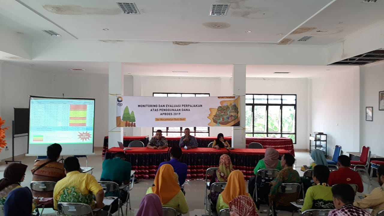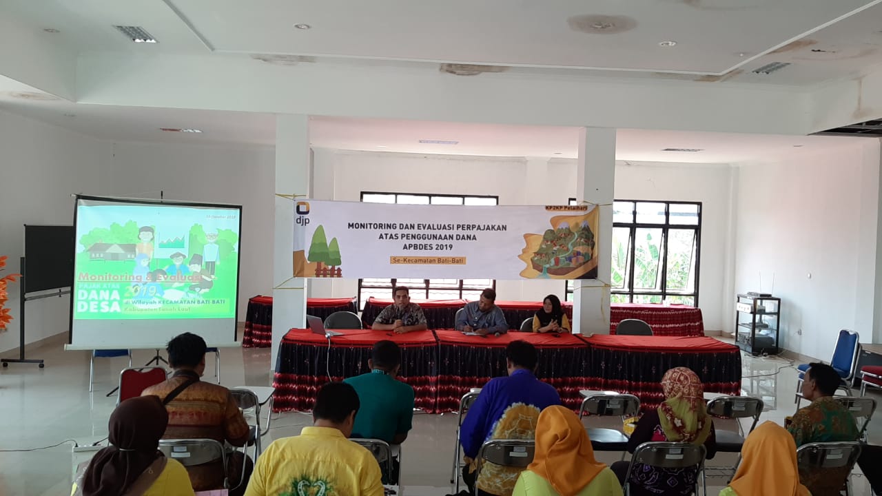 Sebanyak 14 desa di wilayah Kecamatan Bati-Bati, Kabupaten Tanah Laut, Kalimantan Selatan menghadiri kegiatan Monitoring dan Evaluasi (Monev) Kewajiban Pajak Dana Desa Tahun 2019 yang diselenggarakan oleh Kantor Pelayanan Penyuluhan dan Konsultasi Perpajakan (KP2KP) Pelaihari di Aula Kantor Kecamatan Bati-Bati (Kamis, 10/10).