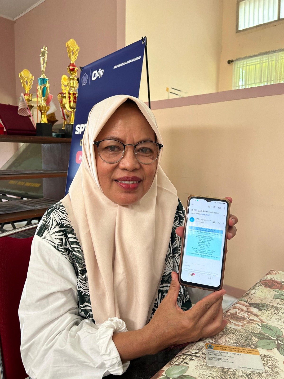 Saat menyampaikan materi dan asistensi, petugas pajak Dian Darmawan menjumpai pegawai yang ingin melaporkan SPT Tahunannya, tetapi ia menggunakan Nomor Pokok Wajib Pajak (NPWP) keluarga yaitu pemenuhan kewajiban perpajakan digabung dengan suami yang merupakan petani. Atas kondisi ini, Darmawan menyampaikan bahwa pelaporan SPT Tahunan sebaiknya menggunakan e-Form.