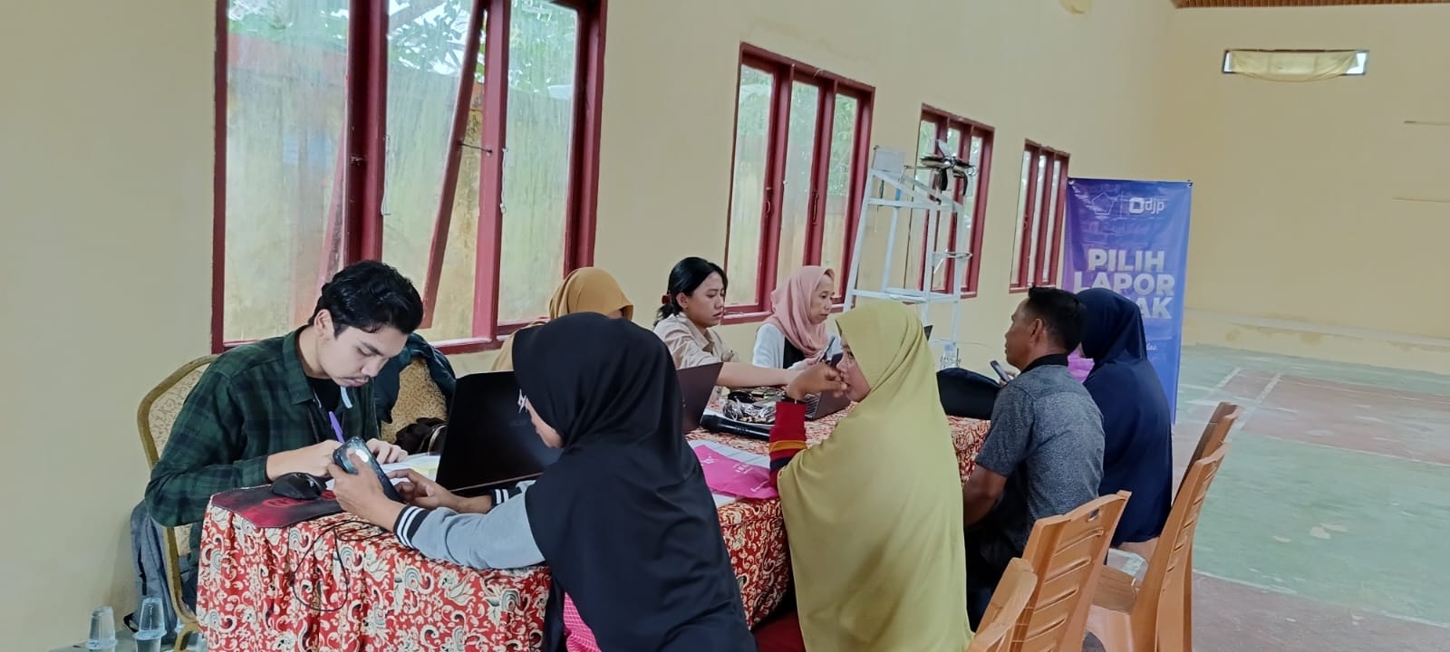 Perjalanan menuju lokasi pojok pajak ditempuh melalui jalur laut dan darat yang membutuhkan waktu sekitar 1 jam perjalanan. Petugas yang memberikan Asistensi pada kegiatan ini diwakili oleh Diana Sari selaku Penyuluh Pajak, Elsa Mailani, Romualdo . S dan Adeline Magdalena Siregar selaku Pelaksana Seksi Pelayanan. Kegiatan Pojok Pajak berlangsung mulai pukul 09.30 s.d. 15.00 WITA. Kehadiran pojok pajak ini dimanfaatkan betul para wajib pajak wilayah Pejala untuk melaporkan SPT Tahunan, validasi Nomor Induk Kependudukan (NIK)-Nomor Pokok Wajib Pajak (NPWP), dan konsultasi perpajakan lainnya.