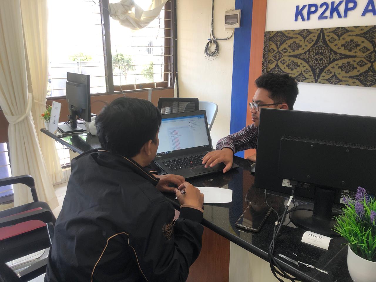 Kantor Pelayanan, Penyuluhan, dan Konsultasi Perpajakan (KP2KP) Amlapura memberikan pelayanan konsultasi aplikasi perpajakan kepada wajib pajak salah satunya aplikasi e-Faktur di Amlapura, Karangasem (Kamis, 10/10).