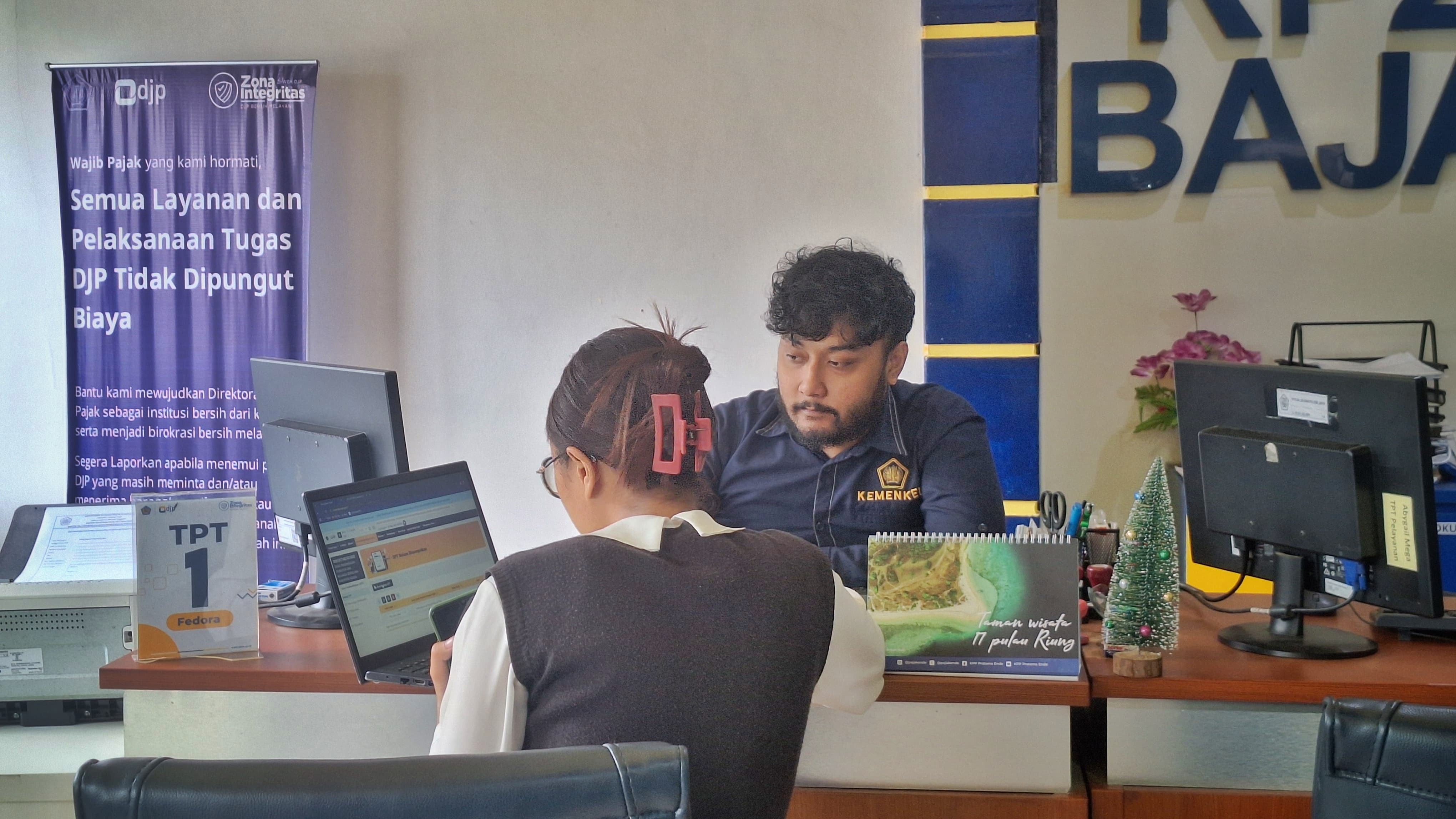 Maksud dan tujuan kedatangan Echa ke KP2KP Bajawa untuk berkonsultasi secara langsung dengan Petugas Tempat Pelayanan Terpadu (TPT) terkait Coretax DJP. Fedora Rifky Winata, Petugas TPT Bajawa menyambut langsung kedatangan Echa dengan melakukan pendampingan pemenuhan kewajiban perpajakan Dinas P2KB melalui laman Coretax DJP.