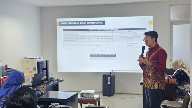 Kantor Pelayanan Pajak (KPP) Pratama Bandar Lampung Satu hadir sebagai narasumber dalam kegiatan sosialisasi tentang Pemotongan Tarif Pajak PPh dan PPN di lingkungan Pemerintah Daerah Kota Bandar Lampung. Kegiatan dilaksanakan di Ruang Rapat BKAD (Badan Keuangan dan Aset Daerah) Kota Bandar Lampung (Selasa, 1/10).
