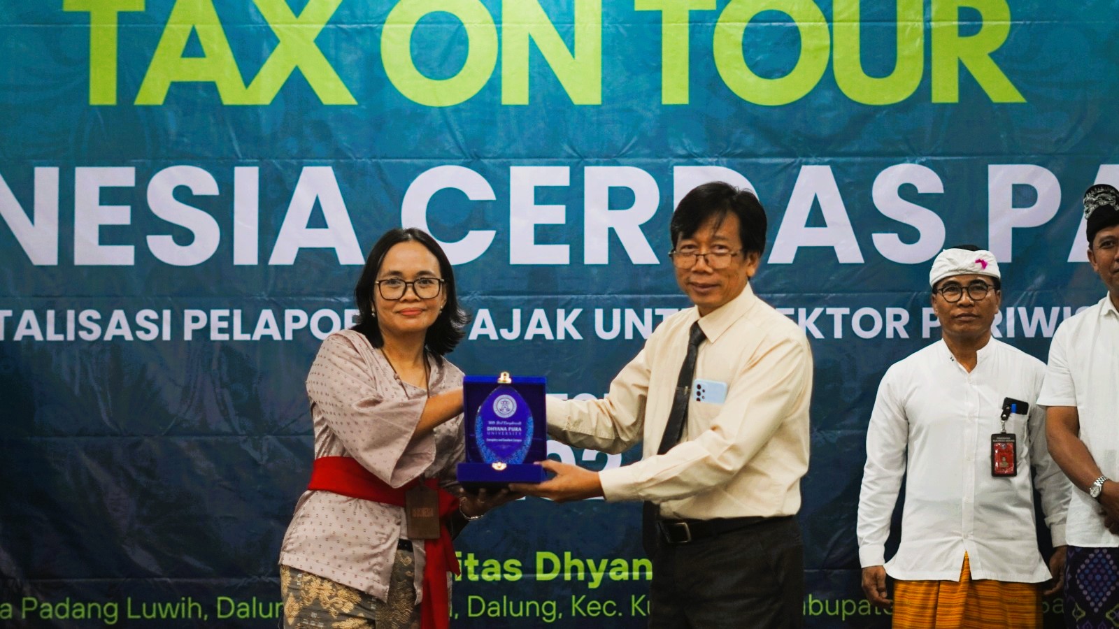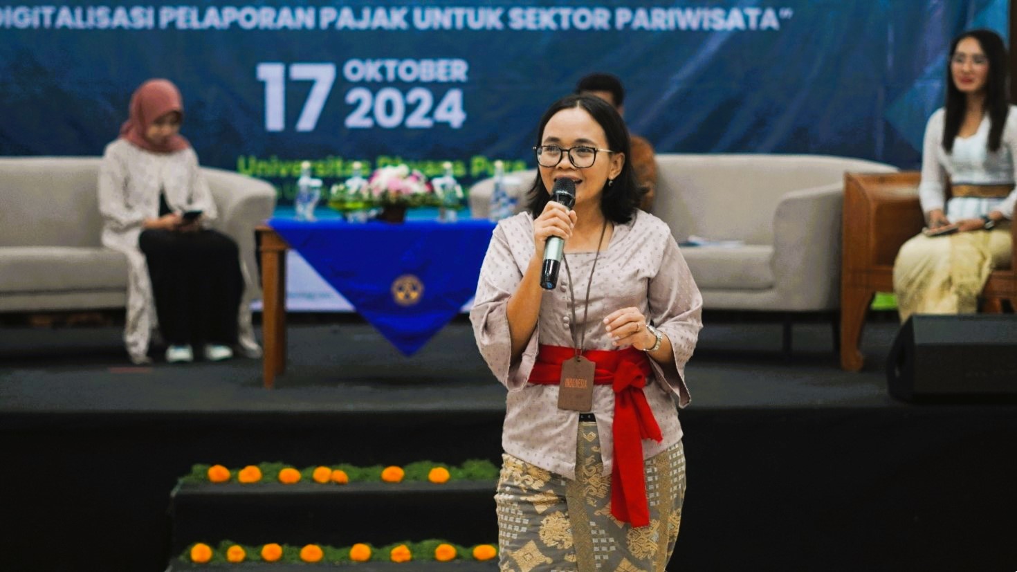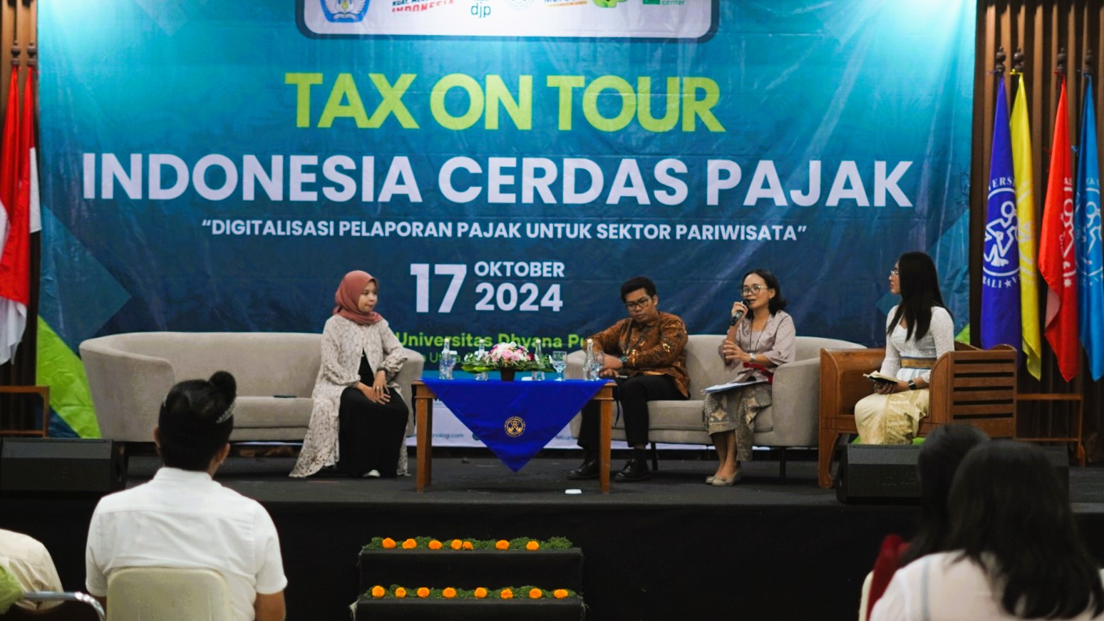 Seminar Perpajakan yang diadakan bertema “Tax on Tour, Indonesia Cerdas Pajak, Digitalisasi Pelaporan Pajak untuk Sektor Pariwisata”, khusus materi tentang Perpajakan dalam Kacamata Pariwisata disampaikan oleh narasumber Kepala Seksi Kerja Sama dan Hubungan Masyarakat Kanwil DJP Bali, Sukarni serta dihadiri lebih dari 100 mahasiswa/i.