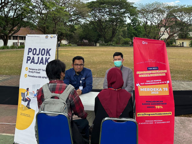 Kantor Pelayanan Pajak (KPP) Pratama Bantaeng yang diwakili oleh Tim Penyuluh KPP Pratama Bantaeng menghelat Pojok Pajak pada kegiatan Temu Ilmiah Nasional (Temilnas) ke-XXII Usaha Mikro, Kecil, dan Menengah (UMKM) Expo Sharia Economic Fair di Universitas Islam Negeri (UIN) Alauddin Makassar, Somba Opu, Kabupaten Gowa (Rabu, 23/8).
