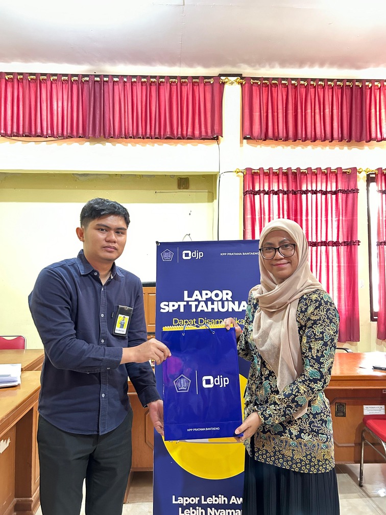 Kantor Pelayanan Pajak Pratama Bantaeng menggelar kegiatan sosialisasi dan asistensi penyampaian Surat Pemberitahuan (SPT) Tahunan di Dinas Pariwisata Kabupaten Bantaeng yang beralamat di Jalan Lembang, Bantaeng, Sulawesi Selatan (Kamis, 11/1). Kegiatan ini dilakukan dalam rangka merealisasikan kepatuhan pajak para Aparatur Sipil Negara (ASN) di lingkungan Dinas Pariwisata Bantaeng.