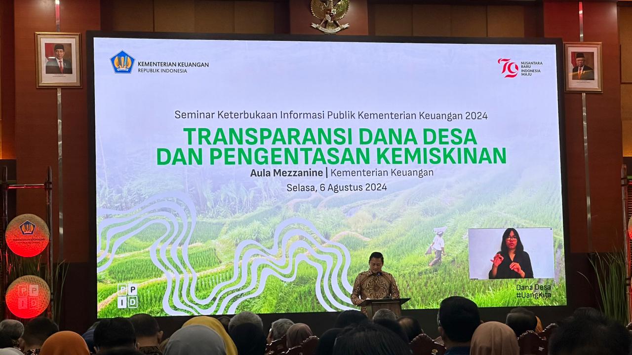 Penghargaan ini diserahkan dalam acara Seminar Keterbukaan Informasi Publik Tahun 2024 yang disaksikan oleh Wakil Menteri Keuangan (Wamenkeu) II dan seluruh pejabat eselon I Kementerian Keuangan. Mengusung tema “Transparansi Dana Desa dan Pengentasan Kemiskinan”, kegiatan ini bertujuan untuk meningkatkan pemahaman dan kesadaran masyarakat mengenai pentingnya transparansi dalam pengelolaan dana desa serta upaya pengentasan kemiskinan di Indonesia.