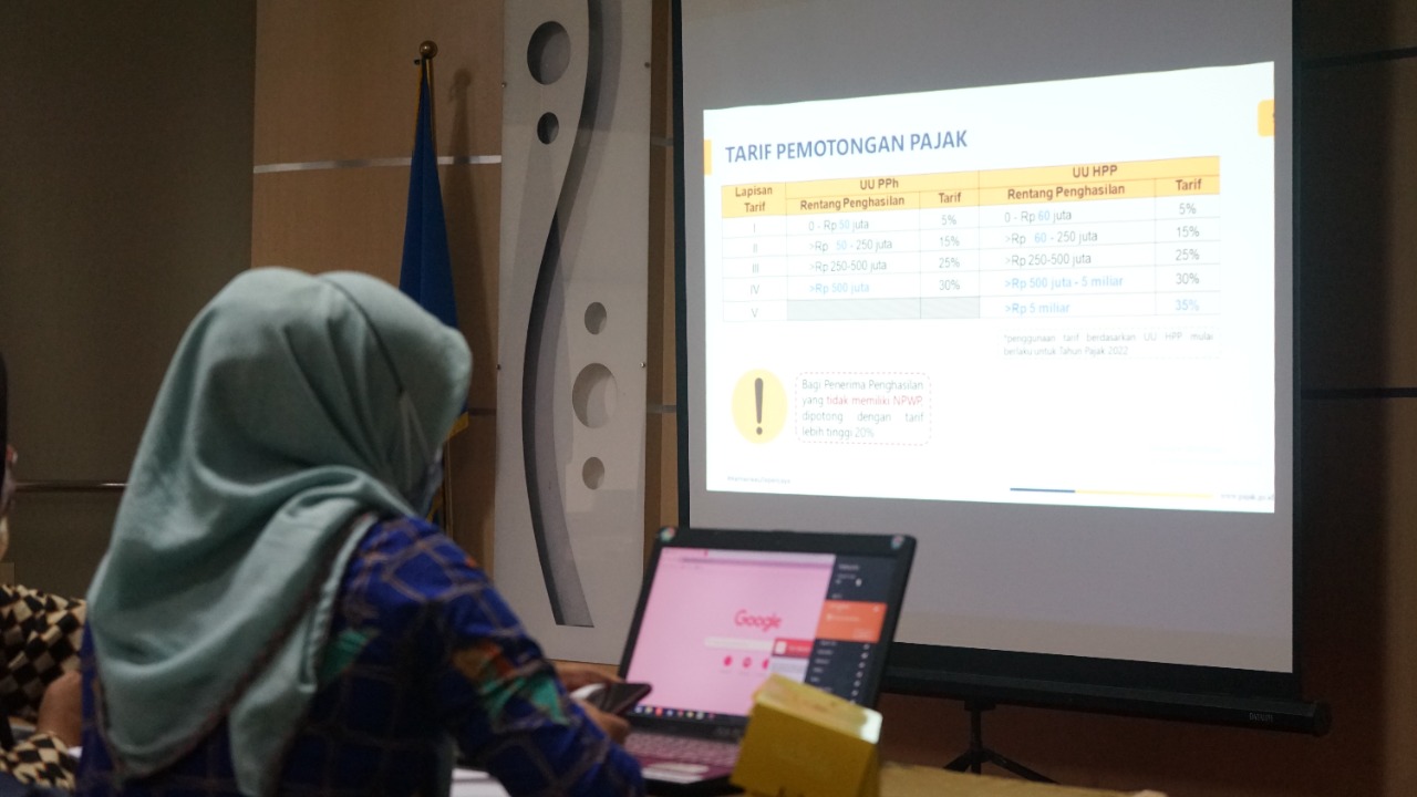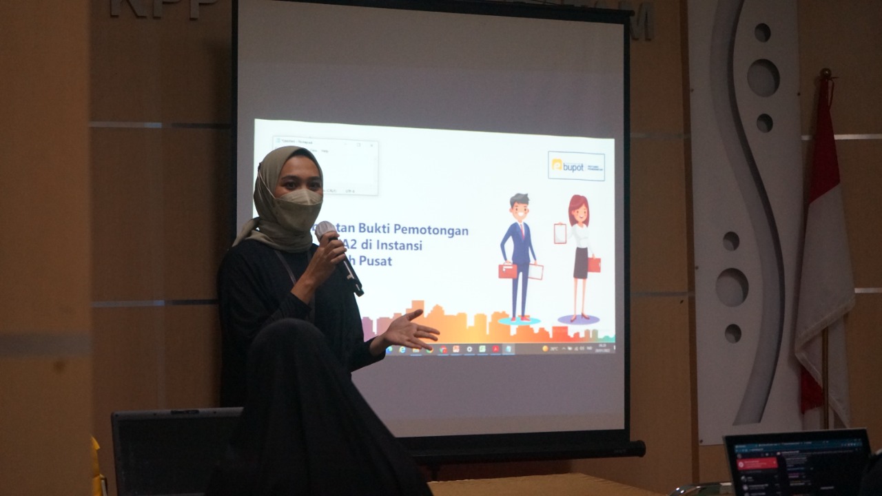 Kantor Pelayanan Pajak (KPP) Pratama Batam Utara menyelenggarakan asistensi pembuatan bukti potong 1721 A1/A2 secara luring untuk Bendahara Instansi Pemerintah di Aula KPP Pratama Batam Utara, Batam, Kepulauan Riau (Kamis, 20/1).