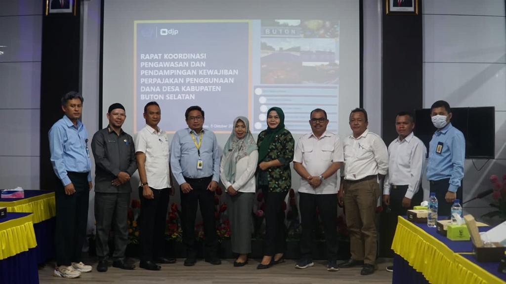 Kantor Pelayanan Pajak (KPP) Pratama Baubau menggelar rapat koordinasi pengawasan dan pendampingan kewajiban perpajakan atas penggunaan dana desa di wilayah Kabupaten Buton Selatan (Rabu, 12/10). Rapat yang diikuti beberapa satuan kerja Kabupaten Buton Selatan yang berlokasi di Ruang Aula KPP Pratama Baubau ini bertujuan agar terciptanya sinergi dalam hal pertukaran informasi dan data pengawasan perpajakan atas penggunaan alokasi dana desa di Kabupaten Buton Slatan.