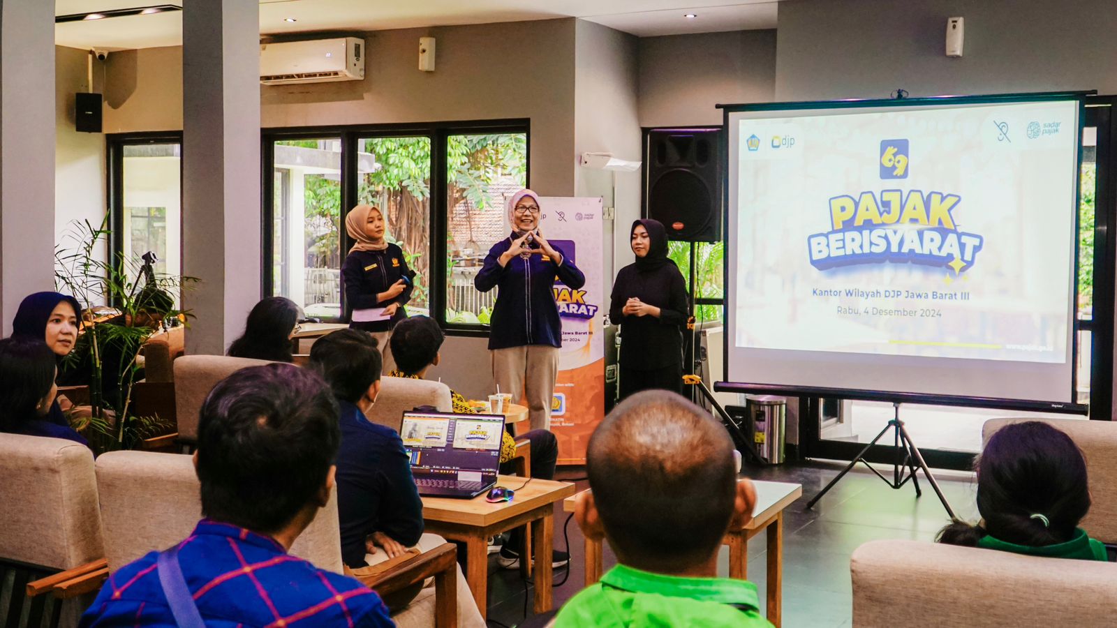Kantor Wilayah Direktorat Jenderal Pajak (Kanwil DJP) Jawa Barat III melakukan edukasi perpajakan kepada penyandang disabilitas tuli anggota Gerakan untuk Kesejahteraan Tunarungu Indonesia (Gerkatin) Kota Bogor dan Kota Depok melalui program Pajak Berisyarat. Kegiatan dilaksanakan secara luring di Cafe Bikin Kopi, Sanggabuana, Kota Bogor (Rabu, 4/12).