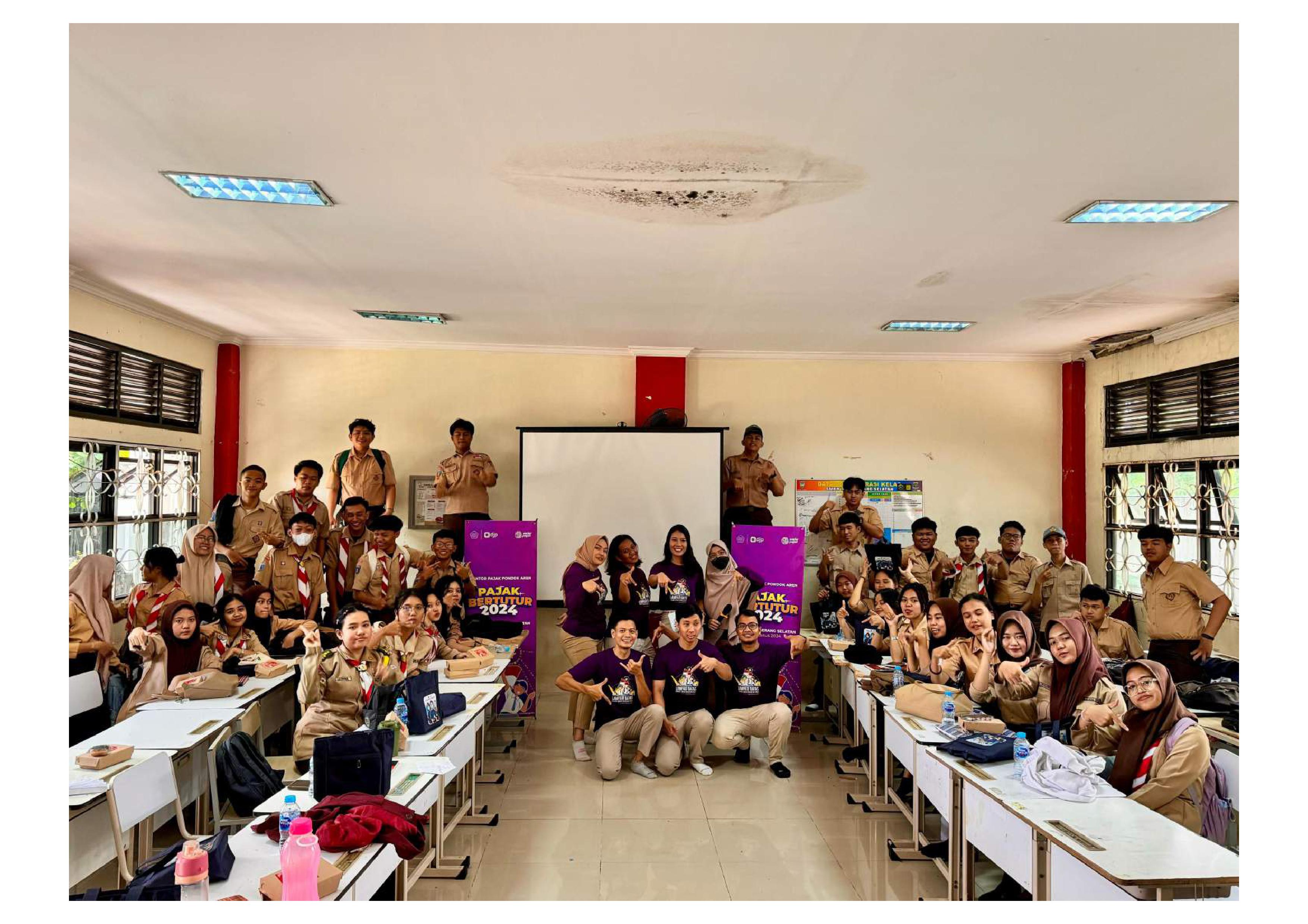Acara ditutup dengan sesi foto bersama dan diakhiri oleh MC, menandai berakhirnya rangkaian kegiatan yang memupuk pemahaman tentang perpajakan dan meningkatkan rasa bangga terhadap kontribusi pajak untuk negara.