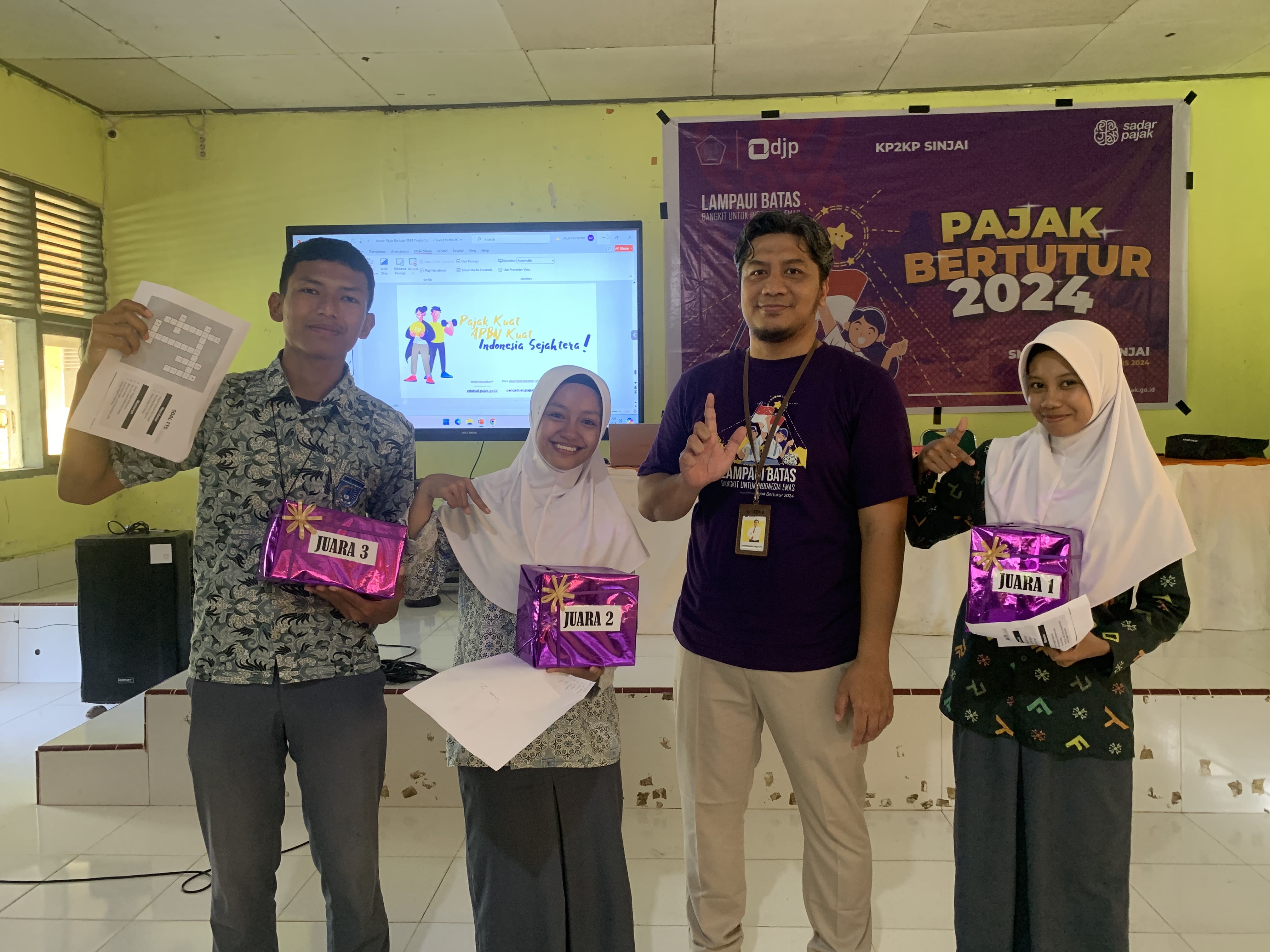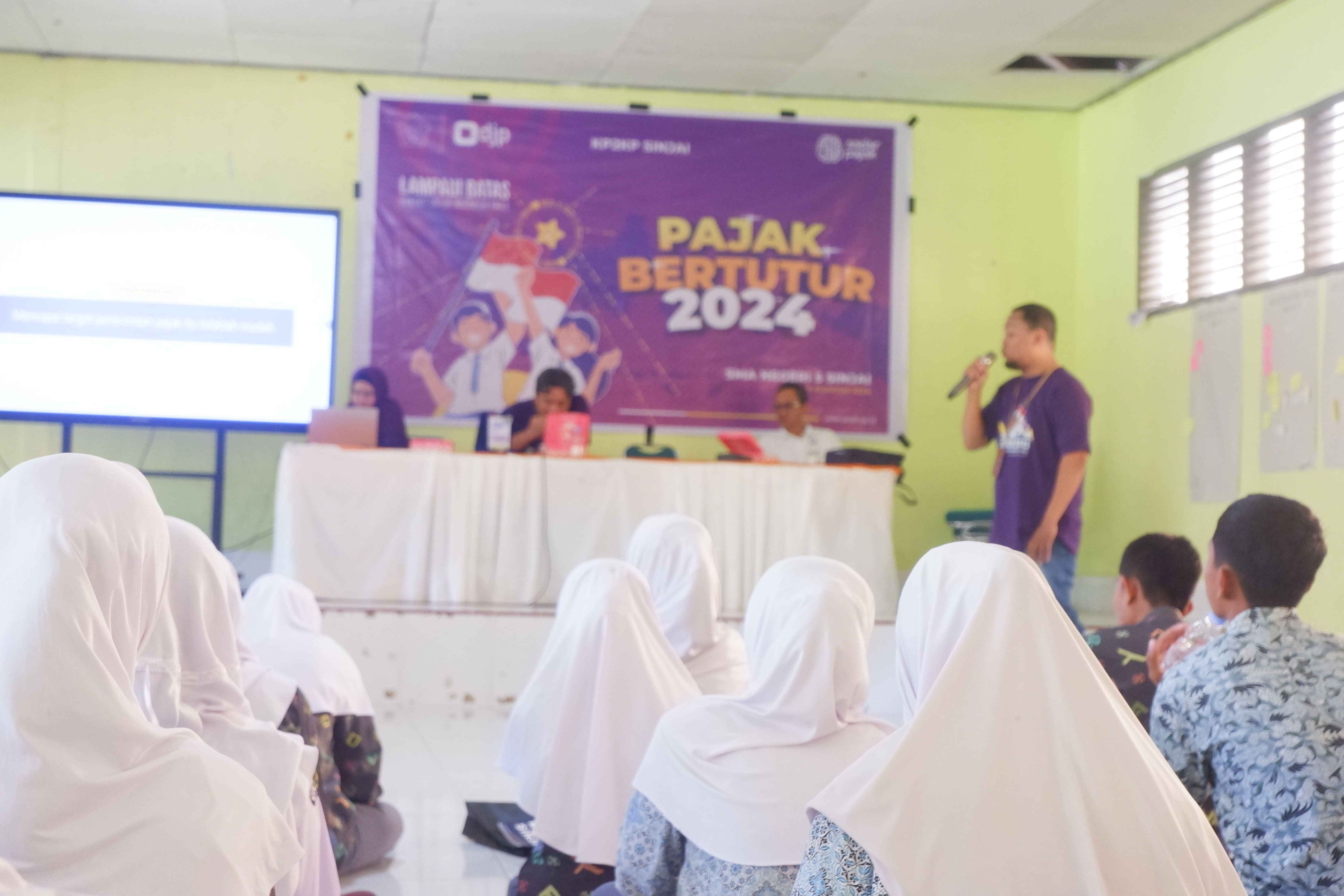 Kantor Pelayanan, Penyuluhan, dan Konsultasi Perpajakan (KP2KP) Sinjai melakukan edukasi perpajakan dengan menyelenggarakan Pajak Bertutur 2024 di Sekolah Menengah Atas (SMA) Negeri 5 Sinjai (Rabu, 7/8). Kegiatan ini diikuti secara antusias oleh 30 siswa yang juga dihadiri oleh Kepala Sekolah SMA Negeri 5 Sinjai, Darsam dan Wakil Kepala Sekolah H.Aribe.