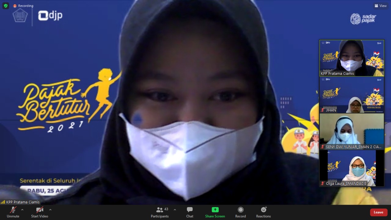 KPP Pratama Ciamis menyelenggarakan acara Pajak Bertutur 2021 melalui Aplikasi Zoom Meeting, di jalan Drs. H. Soejeoed, Kabupaten Ciamis (Rabu, 25/8).