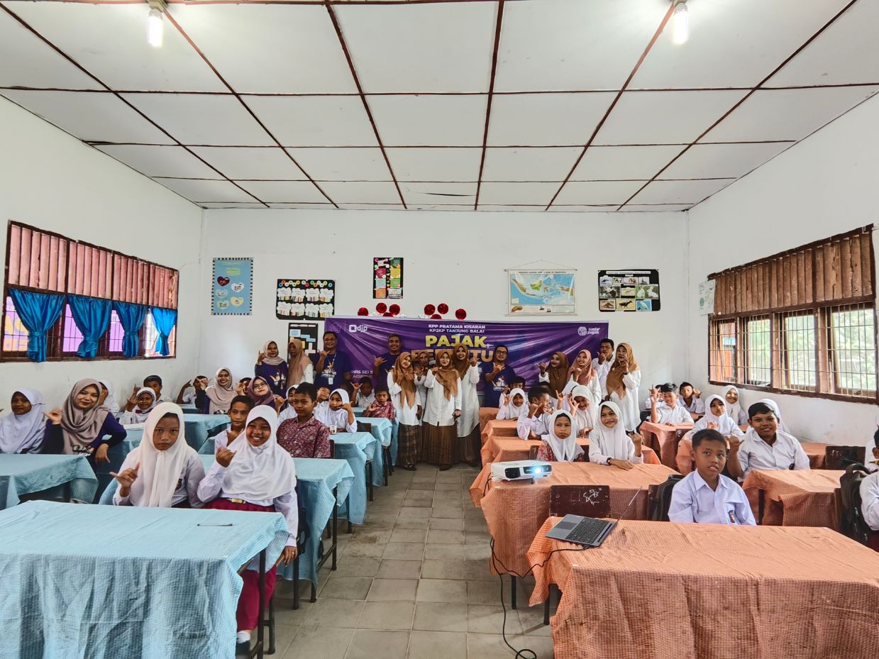 Kantor Pelayanan Pajak (KPP) Pratama Kisaran dan Kantor Pelayanan, Penyuluhan, dan Konsultasi Perpajakan (KP2KP) Tanjung Balai melaksanakan kegiatan Pajak Bertutur Tahun 2024 bersama Sekolah Dasar Negeri (SDN) 010015 Sei Serindan, Kecamatan Sei Kepayang Barat, Kabupaten Asahan (Rabu, 7/8).