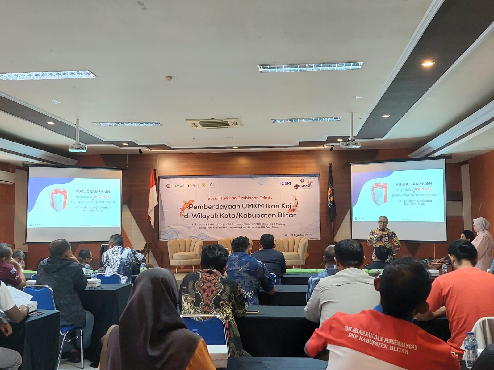 Kantor Pelayanan Pajak (KPP) Pratama Blitar menyelenggarakan Sosialisasi dan Bimbingan Teknis Pemberdayaan Usaha Mikro Kecil dan Menengah (UMKM) Ikan Koi di wilayah Kota dan/atau Kabupaten Blitar (Selasa, 9/8). Acara ini dilaksanakan di Aula KPP Pratama Blitar, Kota Blitar, Jawa Timur.