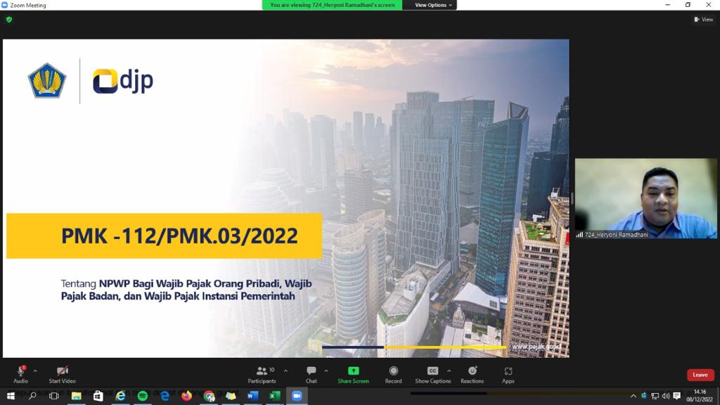 “Telah terbit Peraturan Menteri Keuangan (PMK) Nomor 112/PMK.03/2022 tentang Nomor Pokok Wajib Pajak bagi Wajib Pajak Orang Pribadi, Wajib Pajak Badan, dan Wajib Pajak Instansi Pemerintah pada 12 Juli 2022 lalu,” jelas Heryoni Ramadhani selaku Fungsional Penyuluh KPP Pratama Bontang.