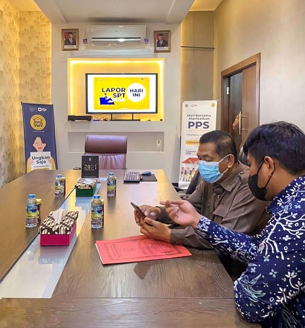 Kantor Pelayanan Pajak (KPP) Pratama Bontang memberikan pelayanan asistensi pelaporan Surat Pemberitahuan (SPT) Tahunan Orang Pribadi Karyawan kepada tiga anggota Komisi II DPRD Kota Bontang yaitu Abdul Haris, Maming, dan Raking di ruang rapat KPP Bontang, Kota Bontang (Rabu, 23/2).
