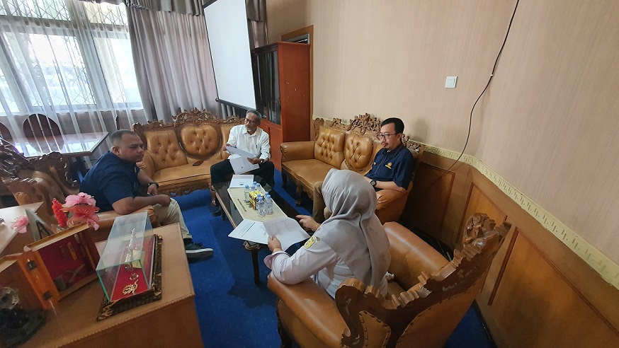 Kantor Pelayanan Pajak (KPP) Pratama Bontang melakukan kunjungan kerja ke Dinas Perkebunan (Disbun) Kabupaten Kutai Timur dalam rangka penyampaian surat dan koordinasi awal atas data Badan Pengawasan Keuangan dan Pembangunan (BPKP) terkait data perizinan wajib pajak Pajak Bumi dan Bangunan (PBB) Perkebunan Sawit di Kab. Kutai Timur (Rabu, 6/9).