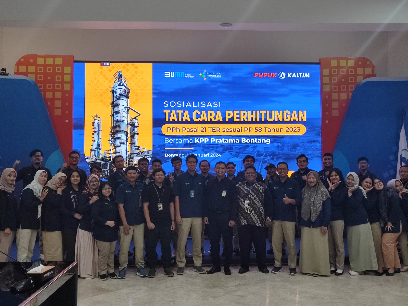 Kantor Pelayanan Pajak (KPP) Pratama Bontang menghadiri undangan dari PT Pupuk Kalimantan Timur (PKT) untuk memberikan sosialisasi terkait Tata Cara Perhitungan Pajak Penghasilan (PPh) Pasal 21 Tarif Efektif Rata-Rata (TER) sesuai dengan Peraturan Pemerintah Nomor 58 Tahun 2023. Kegiatan diselenggarakan di Ruang Mahoni Kantor Pusat PKT, Kota Bontang (Selasa, 16/01). Sosialisasi ini dimulai pukul 09.00 WITA hingga pukul 12.00 WITA.