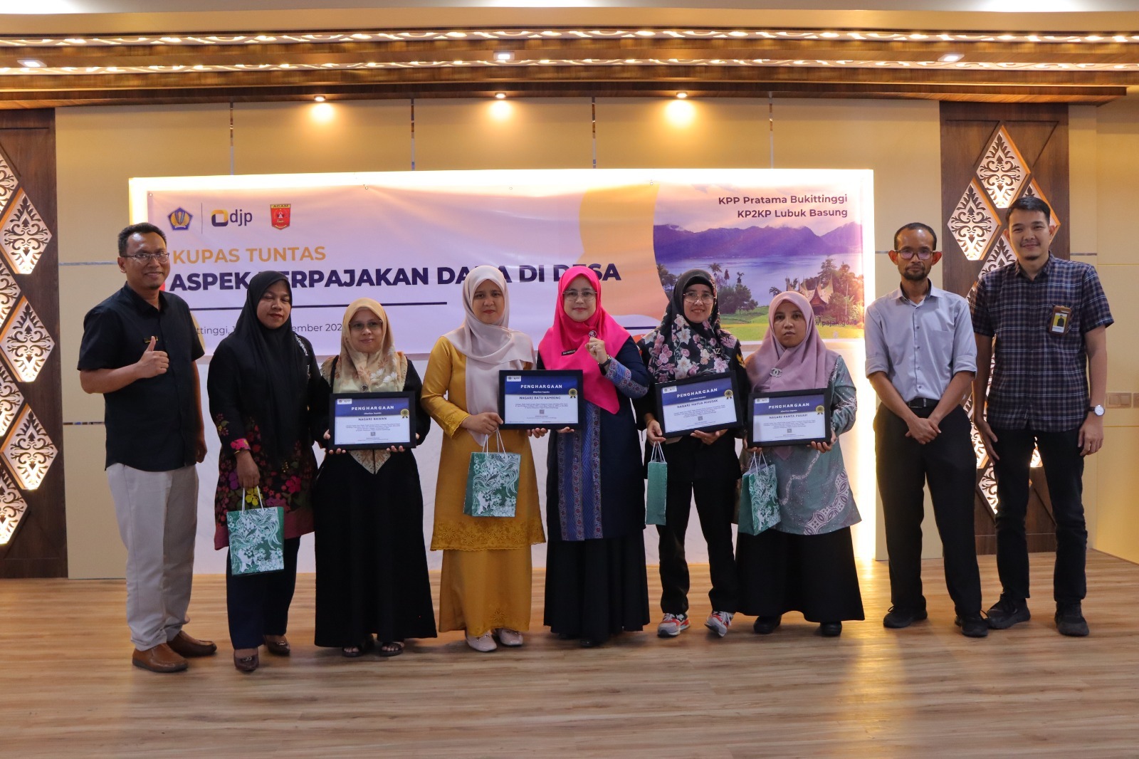 Kantor Pelayanan, Penyuluhan, dan Konsultasi Perpajakan (KP2KP) Lubuk Basung bersama Kantor Pelayanan Pajak (KPP) Pratama Bukittinggi menyelenggarakan penyuluhan dengan tema “Kupas Tuntas Aspek Perpajakan Dana di Desa” (21/11). Kegiatan yang berlangsung selama tiga hari ini bertempat di Aula KPP Pratama Bukittinggi dan dihadiri oleh perwakilan seluruh kecamatan serta nagari di Kabupaten Agam.