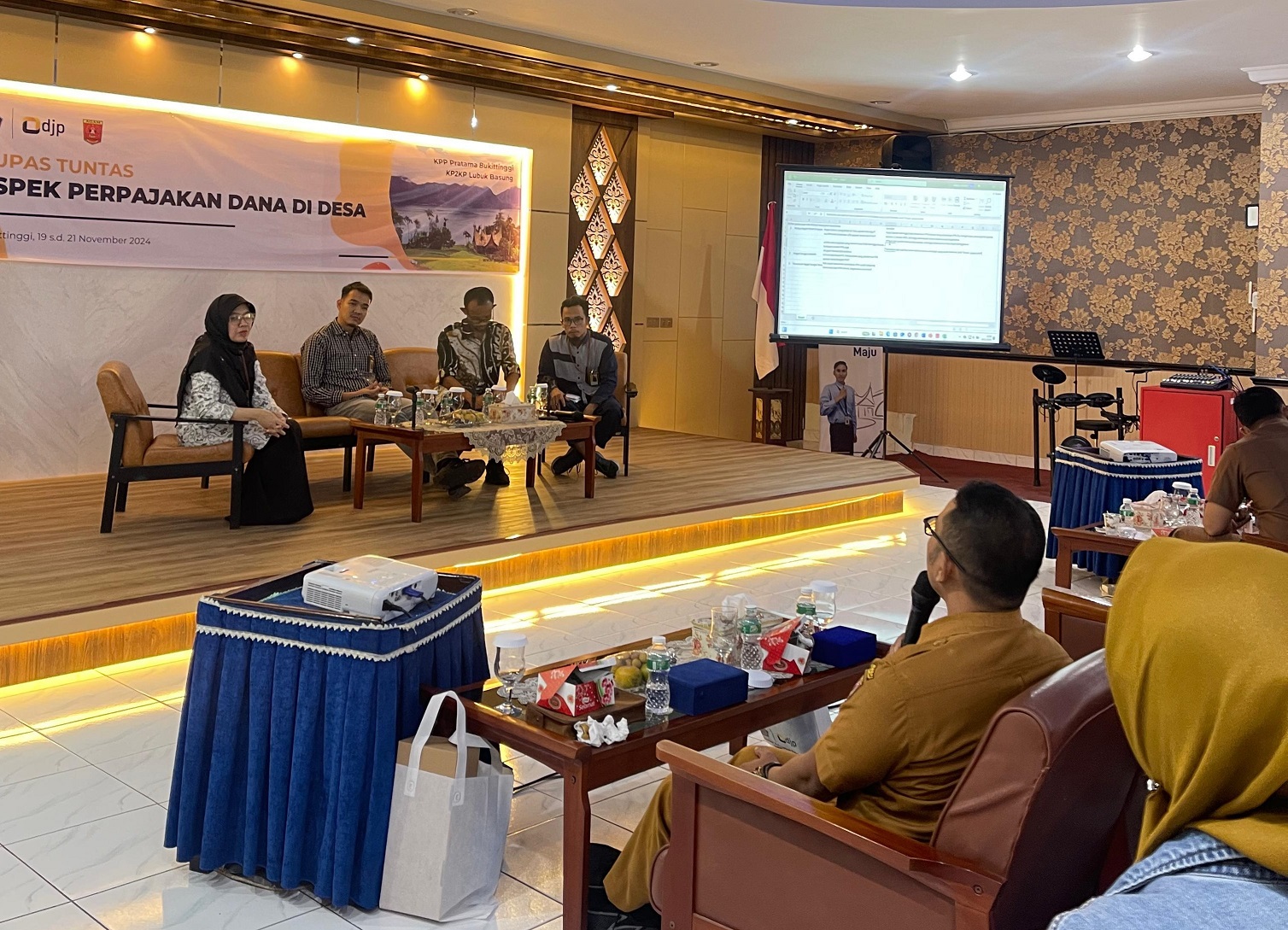 Materi utama disampaikan oleh Tim Penyuluh Pajak KPP Pratama Bukittinggi, Syafrianto Harahap, yang menjelaskan berbagai aspek perpajakan dana desa, termasuk tata cara pelaporan dan regulasi terbaru. Pemaparan materi berlangsung lancar dengan partisipasi aktif dari peserta.