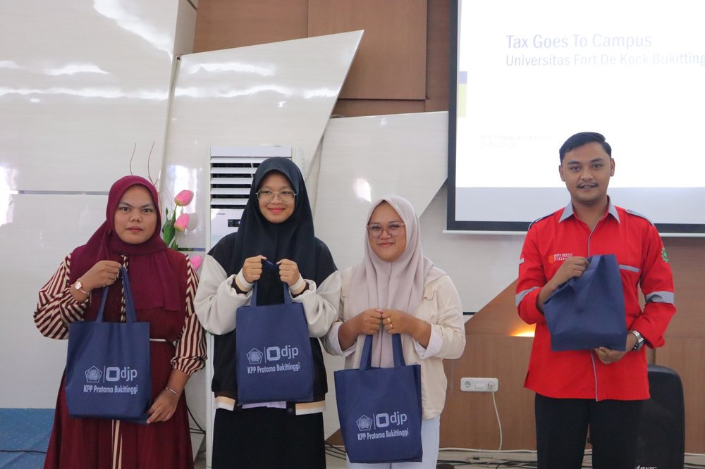 Kantor Pelayanan Pajak (KPP) Pratama Bukittinggi telah mengadakan kegiatan edukasi perpajakan Tax Goes To Campus untuk para mahasiswa di Universitas Fort De Kock Bukittinggi (Rabu, 29/5). Acara ini berlangsung di Aula Gedung Universitas Fort De Kock dan diikuti oleh 150 peserta aktif dari perguruan tinggi tersebut.