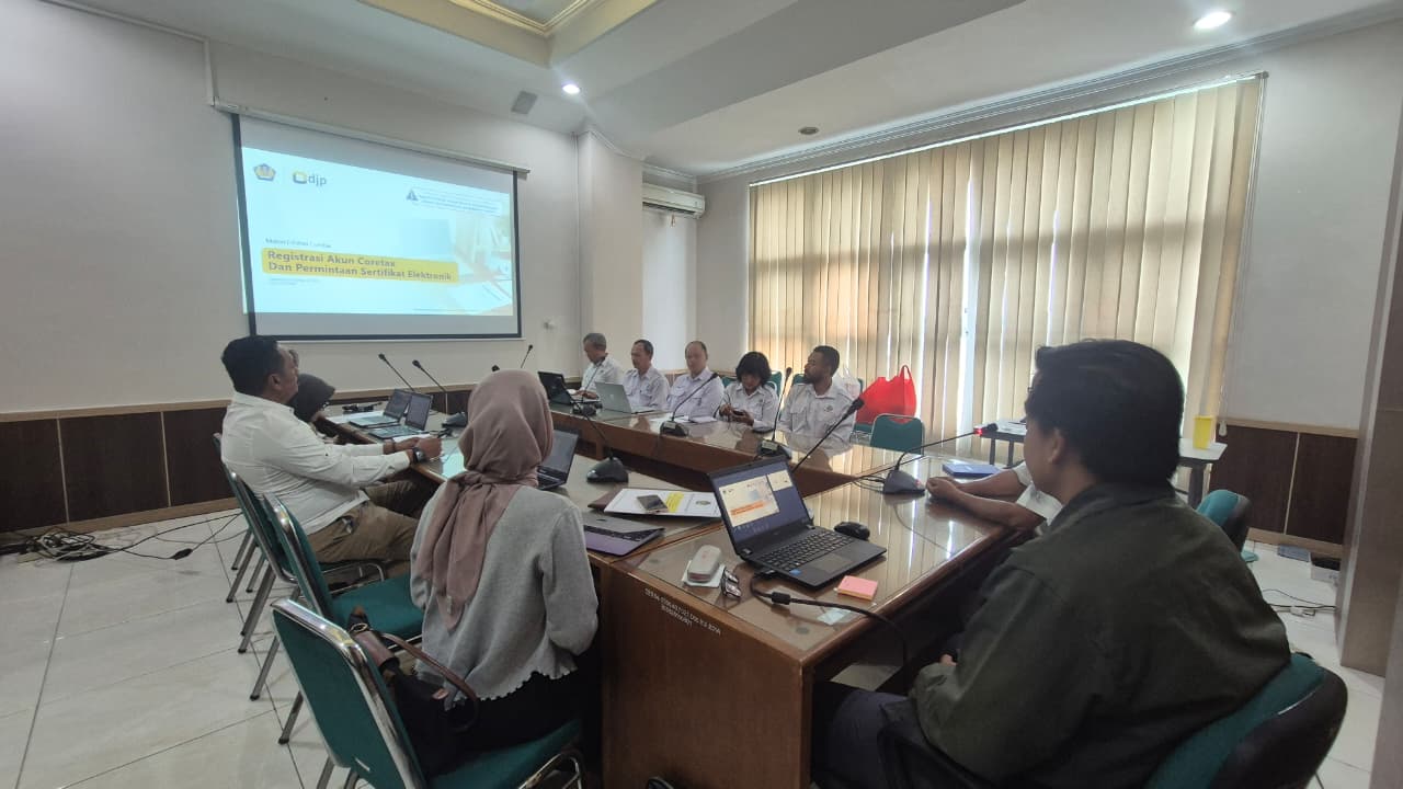 Kantor Pelayanan Pajak (KPP) Pratama Semarang Candisari menghadiri undangan edukasi Aktivasi Akun Coretax dan Kode Otorisasi DJP/Sertifikat Elektronik (KO DJP/SE) kepada pegawai Balai Pengelolaan Daerah Aliran Sungai (BPDAS) Pemali Jratun di Ruang Rapat Kantor BPDAS Pemali Jratun (Senin, 17/11).