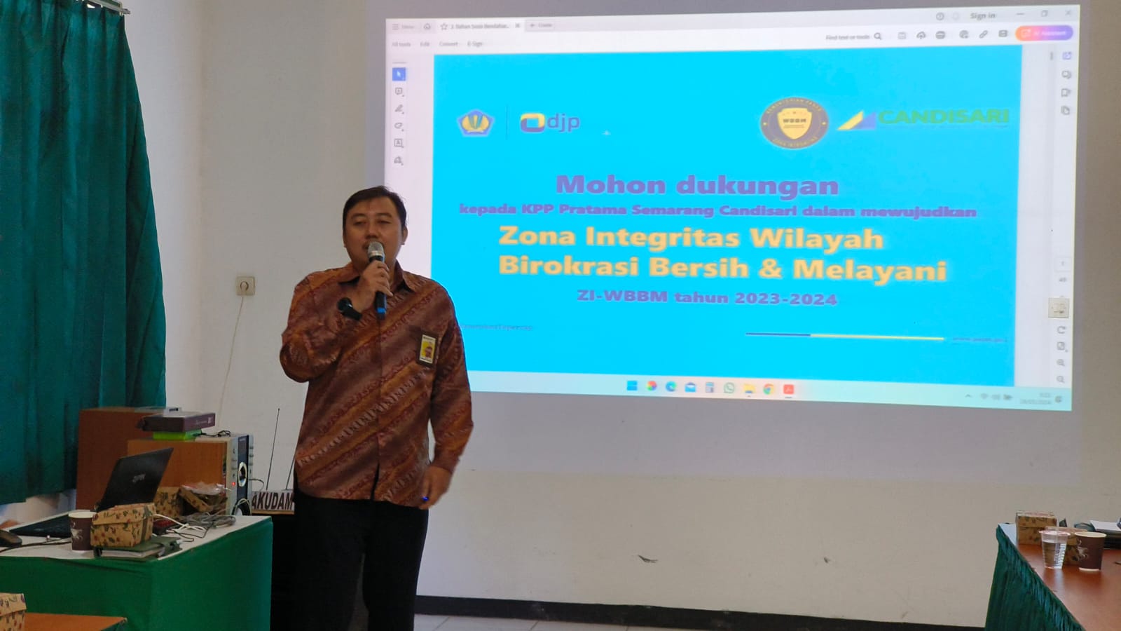 Dihadiri oleh 17 peserta dari masing bendahara satker yang ada di Kodam IV, Kepala Seksi Pengawasan III, Account Representative (AR), dan Penyuluh Pajak KPP Pratama Semarang Candisari. Sebelum materi disampaikan, Tim KPP Pratama Semarang Candisari memberikan informasi terkait keberlangsungan program Zona Integritas Wilayah Bebas dari Korupsi (ZI-WBK) lalu dilanjutkan pemateri oleh Sasongko Budi Widagdo. Adapun materi yang disampaikan yaitu terkait kewajiban perpajakan instansi pemerintah khususnya dalam pembayaran dan pembuatan bukti pemotongan/pemungutan PPh dan PPN secara mandiri dan disiplin melalui aplikasi e-Bupot Unifikasi Instansi Pemerintah.