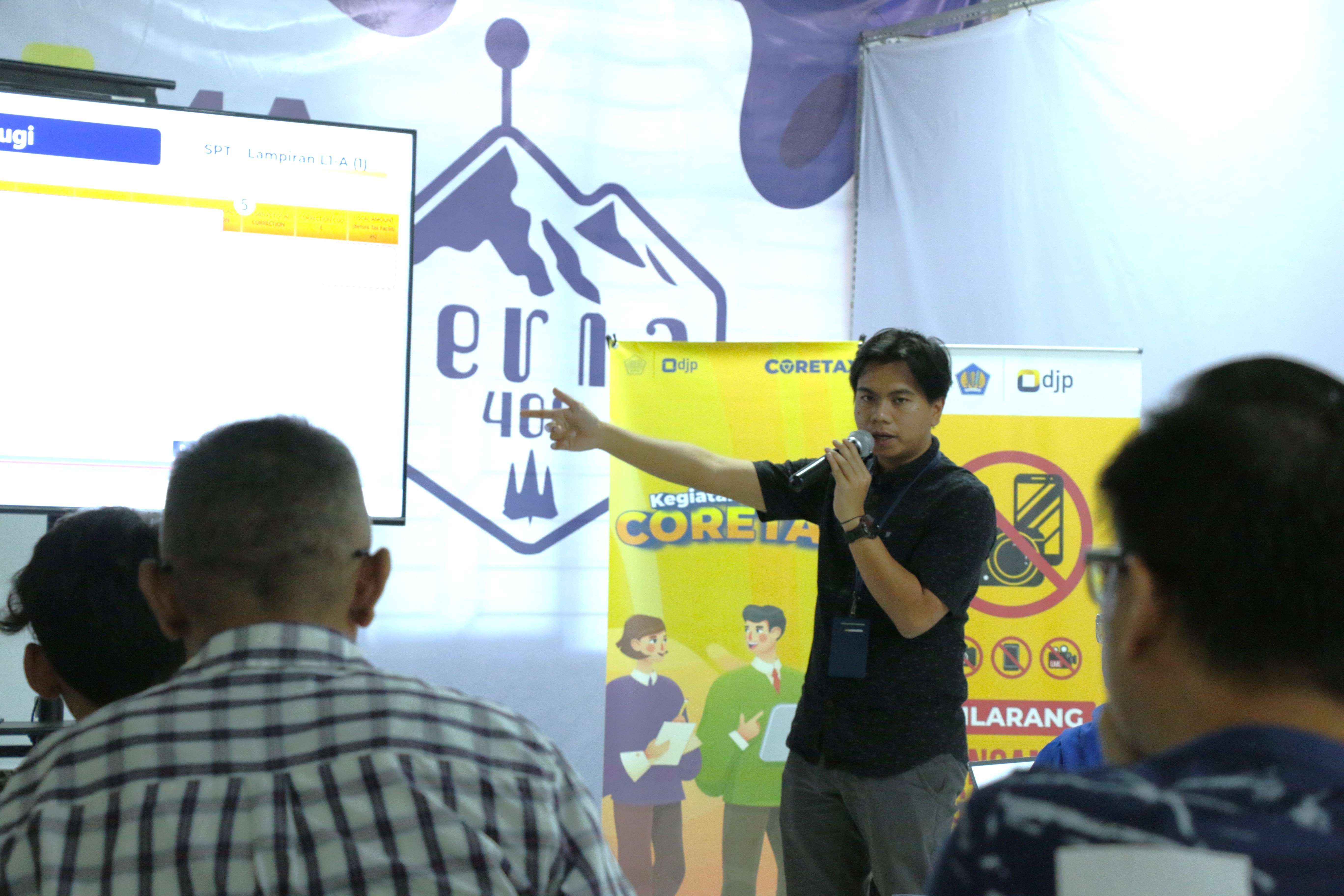"Dalam kegiatan ini, Bapak dan Ibu kami ajak untuk mengenal dan merasakan langsung bagaimana sistem aplikasi Coretax ini berjalan. Yang kita praktikkan saat ini merupakan purwarupa (prototype) dari aplikasi Coretax yang tidak akan jauh berbeda dengan aplikasi yang dijadwalkan akan diluncurkan awal tahun 2025 mendatang," tutur Fadel.