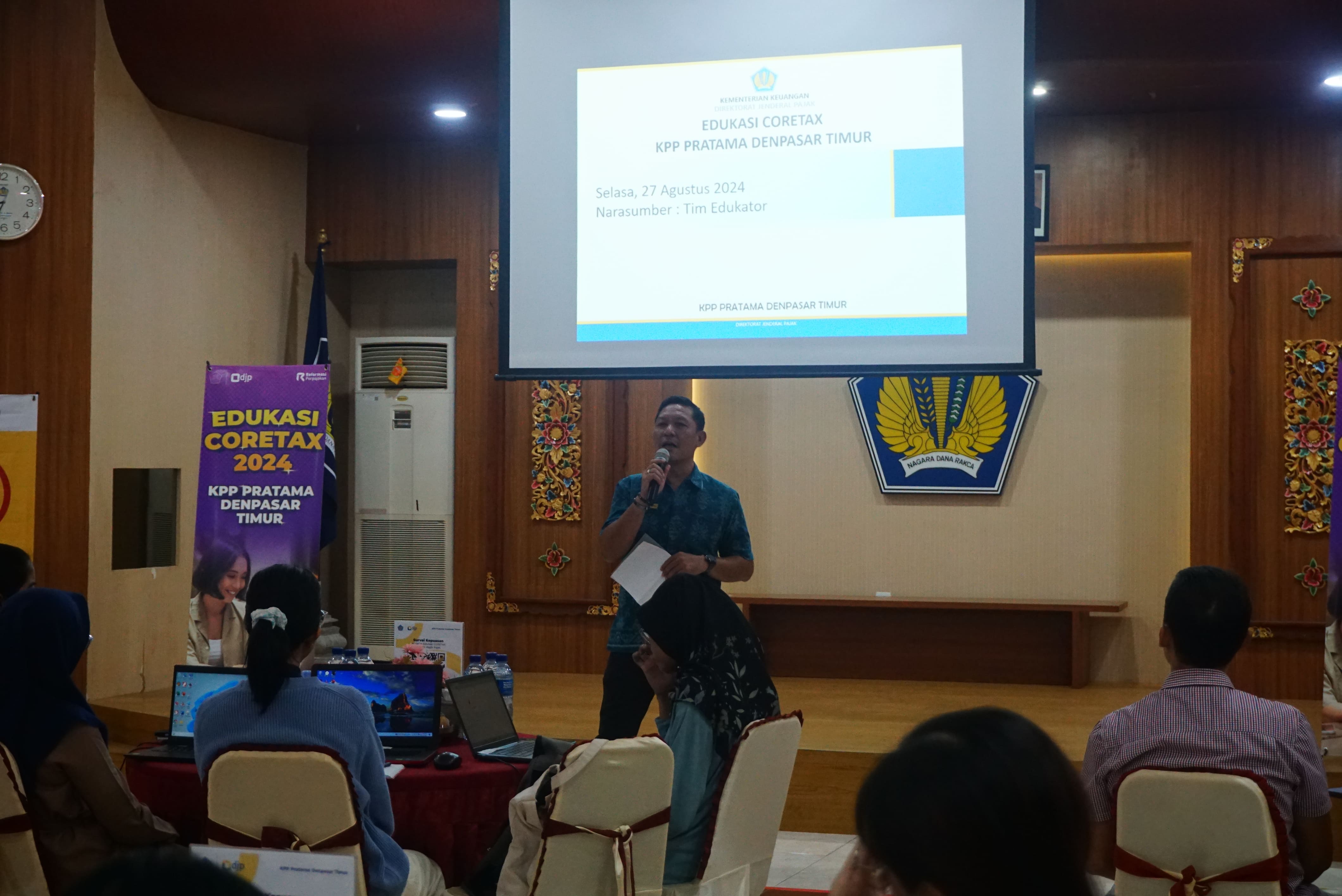 Kantor Pelayanan Pajak (KPP) Pratama Denpasar Timur telah melaksanakan kegiatan Edukasi Coretax kepada wajib pajak terpilih selama periode Agustus sampai September di Aula Gedung Keuangan Negara II, Denpasar (Jumat, 27/9).