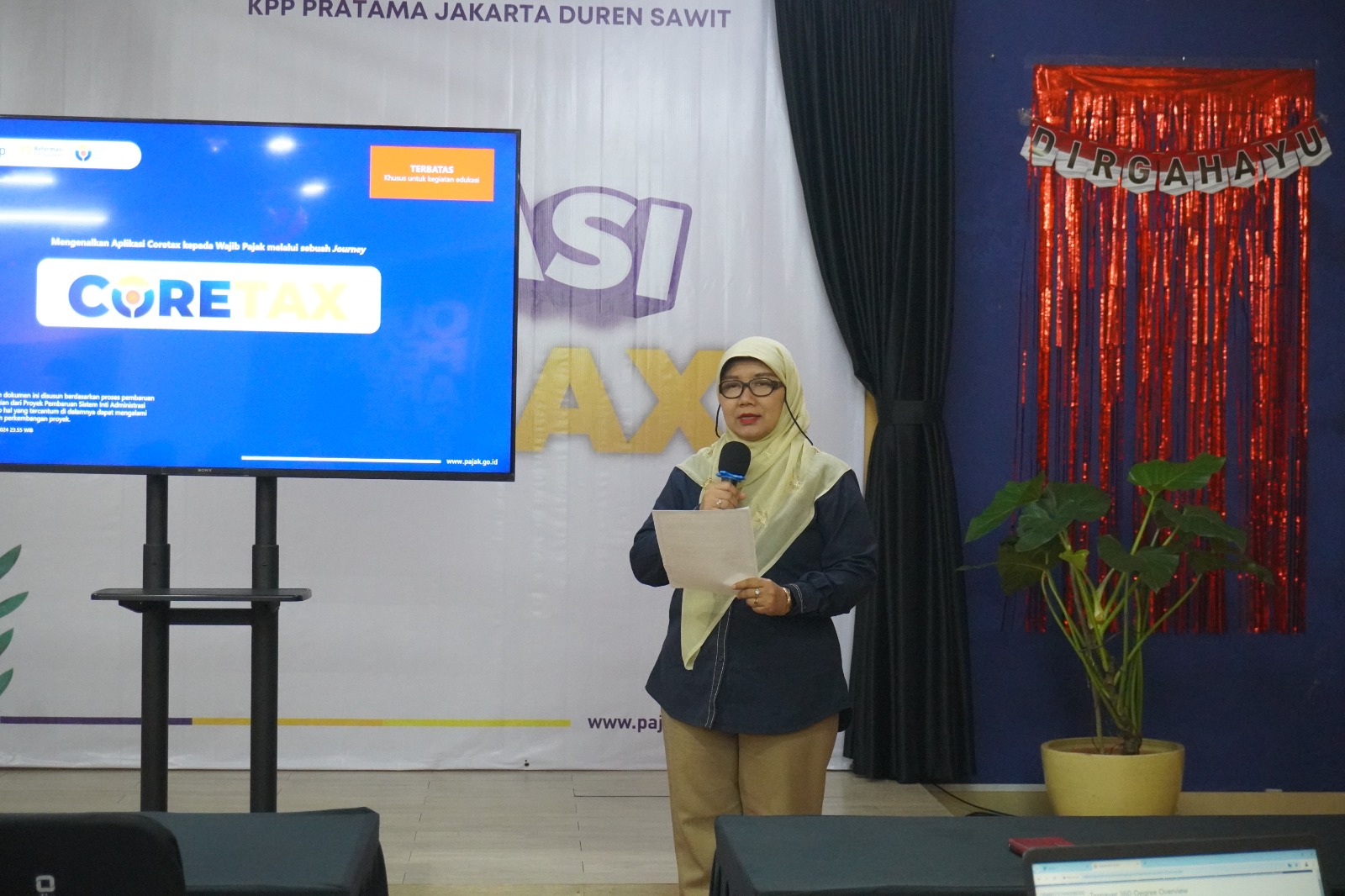 Kantor Pelayanan Pajak (KPP) Pratama Jakarta Duren Sawit melakukan kegiatan edukasi Coretax tahap 1 kepada wajib pajak di lingkungan KPP Duren Sawit yang bertempat di Aula KPP Pratama Jakarta Duren Sawit (Jumat, 27/09). Kegiatan yang mengundang 100 wajib pajak ini diadakan selama 3 minggu, yang dimulai dari tanggal 20 Agustus 2024 sampai dengan 4 September 2024 (Jumat, 27/9).