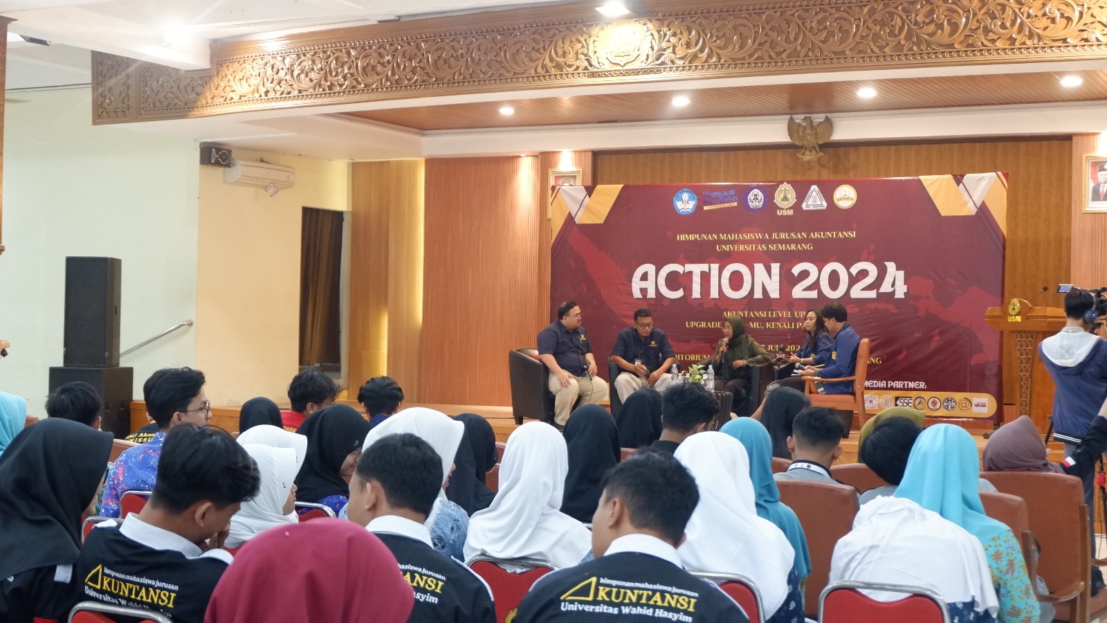 Kantor Pelayana Pajak (KPP) Pratama Semarang Gayamsari mengadakan kegiatan Tax Goes To Campus bersama dengan Fakultas Ekonomi Universitas Semarang (Rabu, 17/7). Kegiatan yang dibalut dalam tajuk kegiatan "Action 2024: Akuntansi Level Up, Upgrade Skill-mu, Kenali Pajak Yuk!” ini dilaksanakan di Auditorium Universitas Semarang (USM) ini diikuti oleh kalangan mahasiswa dan siswa SMA di Semarang.
