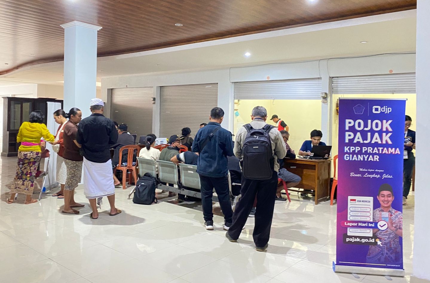 Kantor Pelayanan Pajak (KPP) Pratama Gianyar membuka layanan pojok pajak di Kantor Bersama Loca Crana, Kabupaten Bangli, Bali (Kamis, 21/3). Layanan pojok pajak tersebut dilaksanakan oleh para pegawai Seksi Pengawasan II KPP Pratama Gianyar. Kegiatan ini merupakan bagian dari Layanan di Luar Kantor (LDK) yang dilaksanakan oleh KPP Pratama Gianyar dalam rangka masa pelaporan SPT Tahunan.