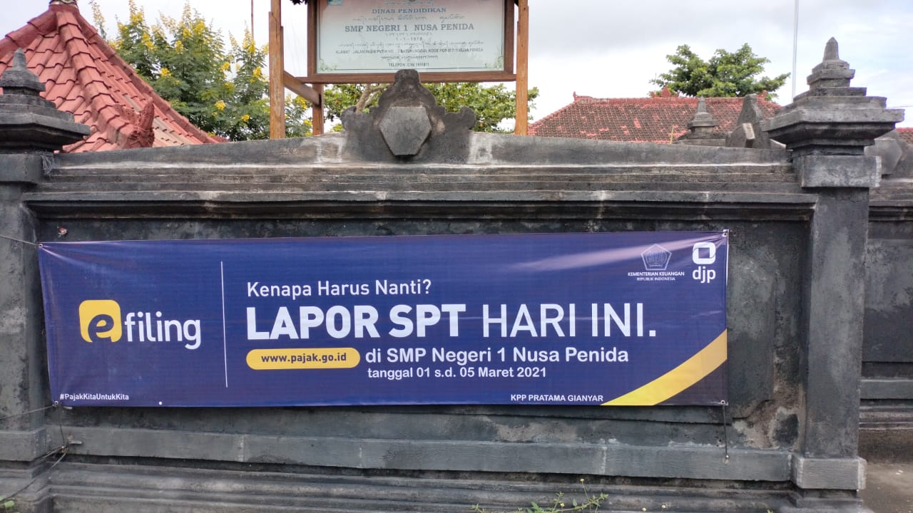 Kantor Pelayanan Pajak (KPP) Pratama Gianyar membuka pos pelayanan pajak (Pos Pajak Nusa) di Sekolah Menengah Pertama (SMP) Negeri 1 Nusa Penida, Nusa Penida, Bali (Jumat, 5/3). Pos Pajak Nusa ini dibuka dari tanggal 1 sampai dengan 5 Maret 2021, mulai pukul 08.00 sampai dengan 09.00 WITA.