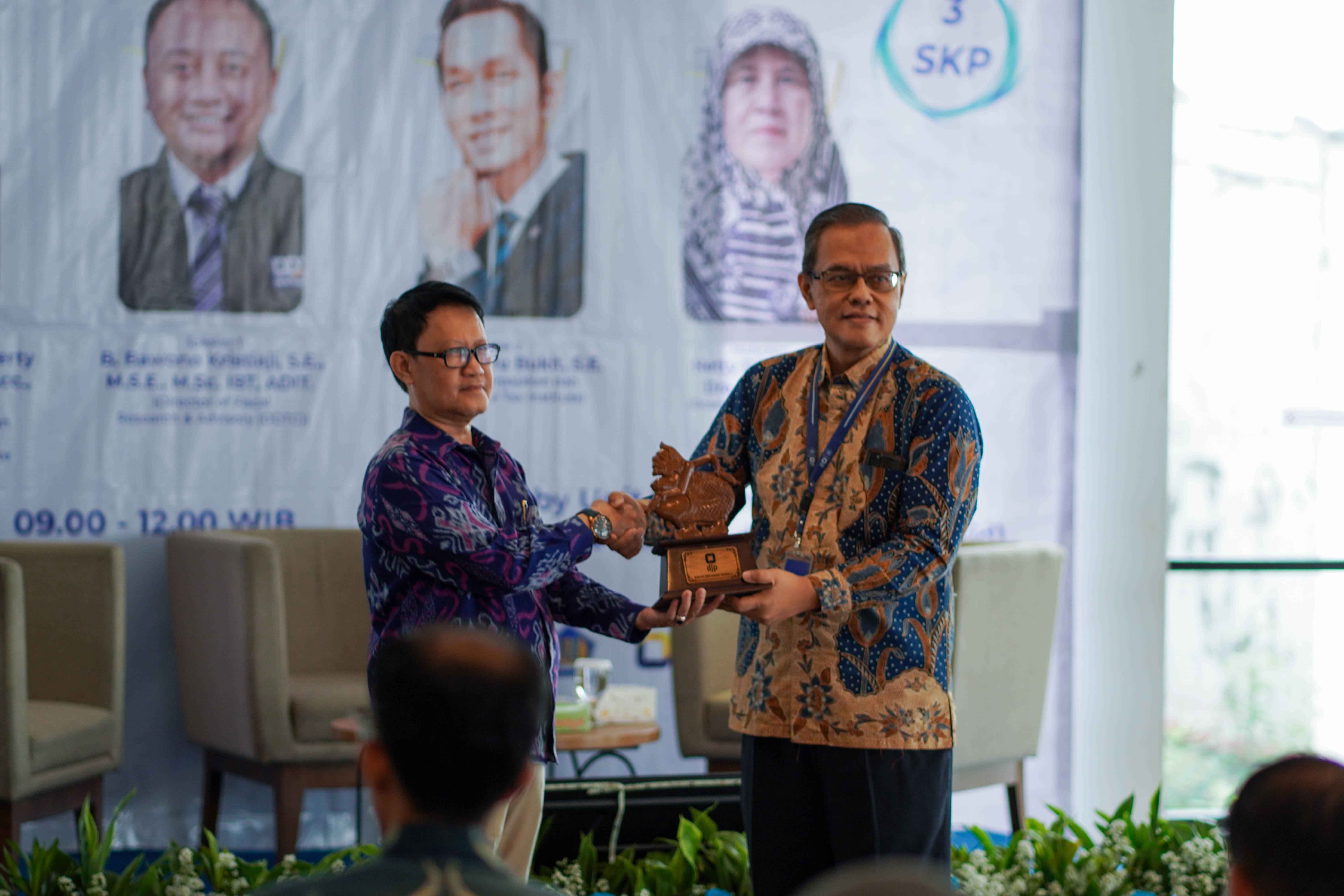 Kegiatan dilanjutkan dengan penyerahan plakat dan cinderamata dari Kanwil DJP Jakarta Selatan I kepada IKPIA Perbanas, foto bersama, dan kuliah umum dengan judul Perkembangan Perpajakan Internasional Terkini Paska Pandemi Covid-19.