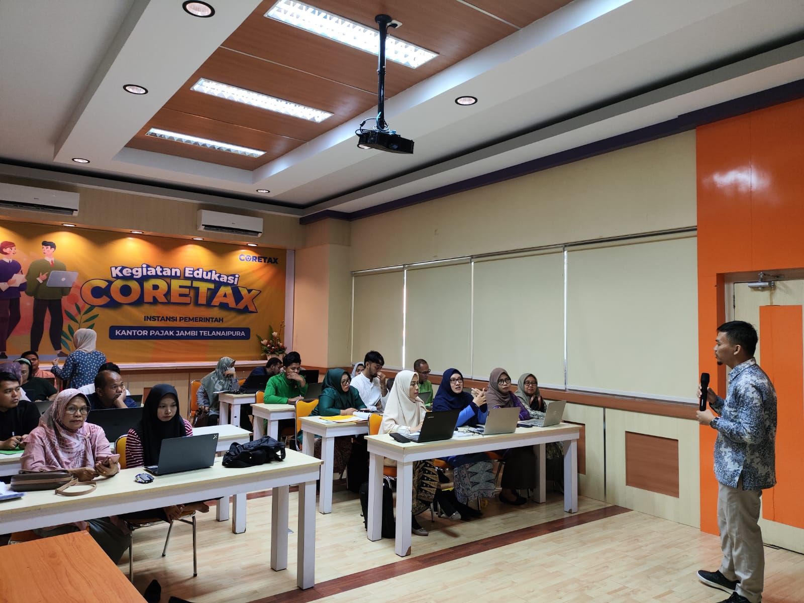 Kantor Pelayanan Pajak (KPP) Pratama Jambi Telanaipura mengadakan kelas pajak bagi wajib pajak dari instansi pemerintah untuk mengenalkan fitur-fitur dalam Core Tax Administration System (CTAS) atau lebih dikenal dengan Coretax DJP. Kegiatan ini dihadiri oleh para bendahara instansi pemerintah daerah Kota Jambi di Kota Jambi (Jumat, 3/1).