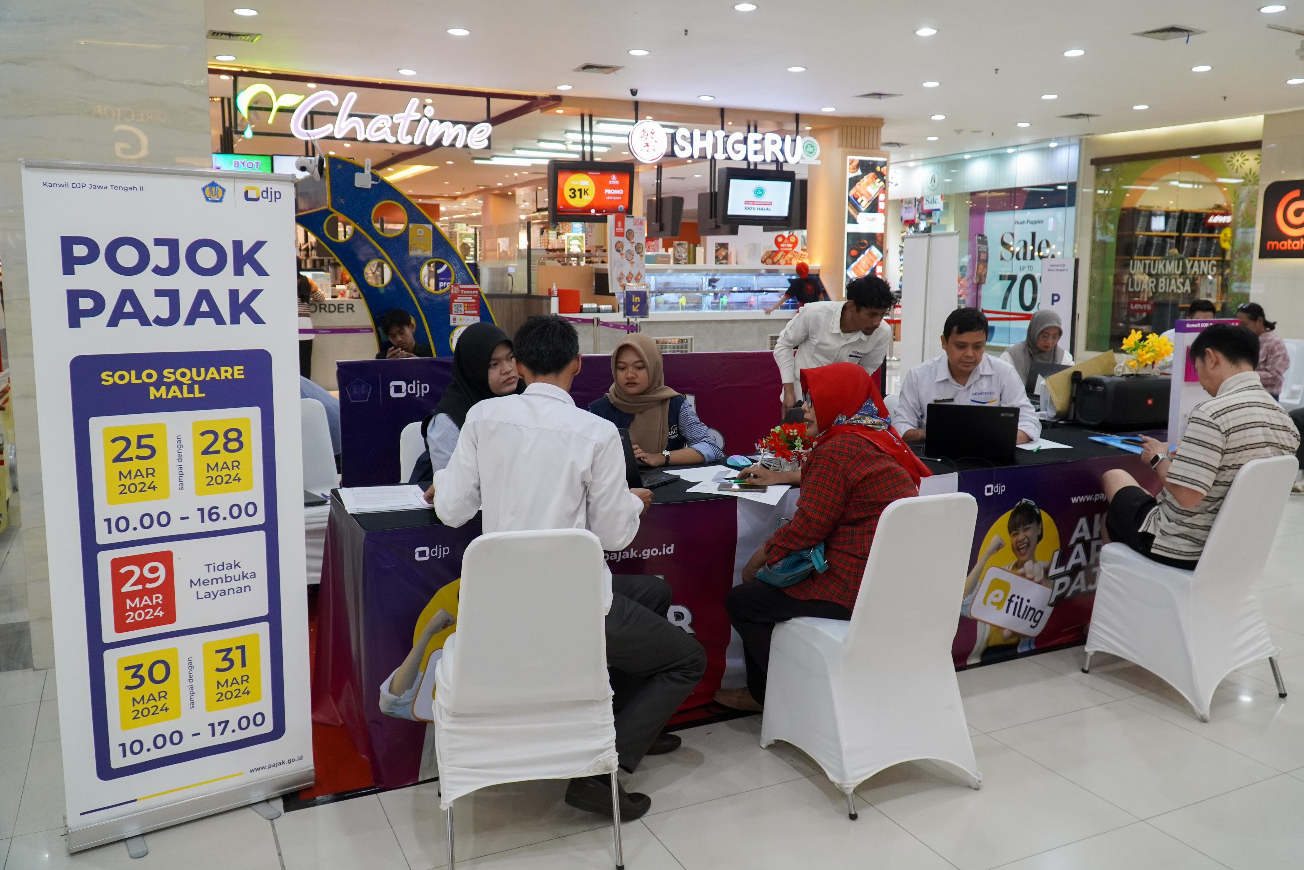 Kantor Wilayah Direktorat Jenderal Pajak (Kanwil DJP) Jawa Tengah II telah memulai upaya baru dengan meluncurkan layanan Pojok Pajak di Solo Square Mall, Surakarta (Senin, 25/3). Layanan ini dimulai pada Senin, 25 Maret, dan akan beroperasi hingga 31 Maret 2024, dari pukul 10.00 hingga 16.00 WIB, kecuali pada 29 Maret 2024 yang merupakan Hari Wafat Isa Al-Masih yang merupakan hari libur nasional. Pada akhir pekan, yaitu tanggal 30 dan 31 Maret 2024, layanan akan diperpanjang hingga pukul 17.00 WIB.