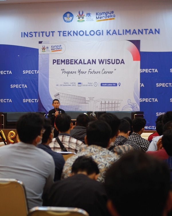 Kantor Wilayah Direktorat Jenderal Pajak Kalimantan Timur dan Utara (Kanwil DJP Kaltimtara) diundang oleh Institut Teknologi Kalimantan (ITK) untuk memberikan edukasi perpajakan kepada para ratusan calon lulusan yang dilaksanakan di Auditorium Laboratorium Terpadu ITK, Kota Balikpapan (Jumat, 9/9). Kegiatan yang telah digelar sejak Kamis, 8 September 2022 ini merupakan rangkaian dari Pembekalan Wisuda “Prepare Your Furure Career”.