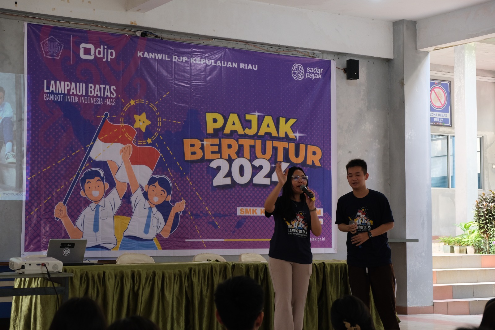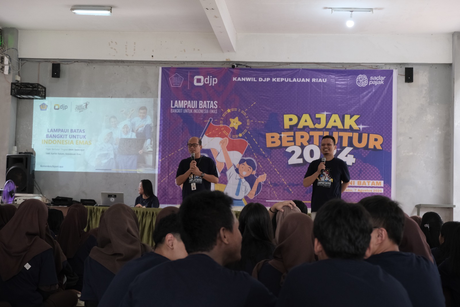 Dengan tema “Lampaui Batas, Bangkit Untuk Indonesia Emas” Penyuluh Pajak Kanwil DJP Kepri memberikan materi mengenai pentingnya pajak sebagai salah satu sumber penerimaan negara untuk membangun Indonesia Emas 2045.