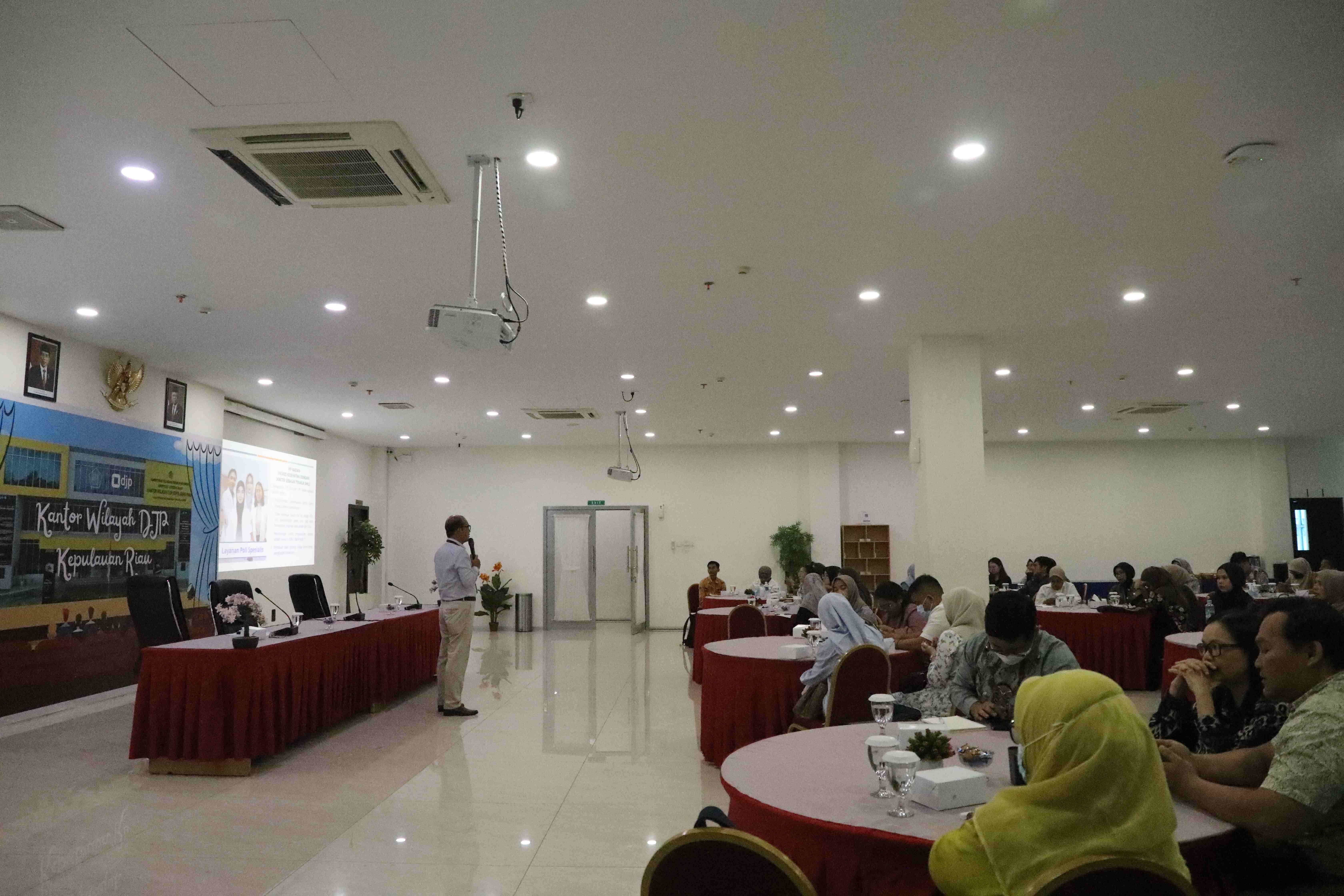 Kantor Wilayah Direktorat Jenderal Pajak Kepulauan Riau (Kanwil DJP Kepri) mengadakan sosialisasi kewajiban perpajakan bagi penyedia fasilitas kesehatan (faskes) di Aula Kanwil DJP Kepri, Kota Batam (Kamis, 17/10). Tim penyuluh pajak Kanwil DJP Kepri bersama dengan tim penyuluh pajak dari Kantor Pelayanan Pajak (KPP) se-Batam mengundang 42 penyedia fasilitas kesehatan di Kota Batam dan dihadiri oleh 49 peserta.