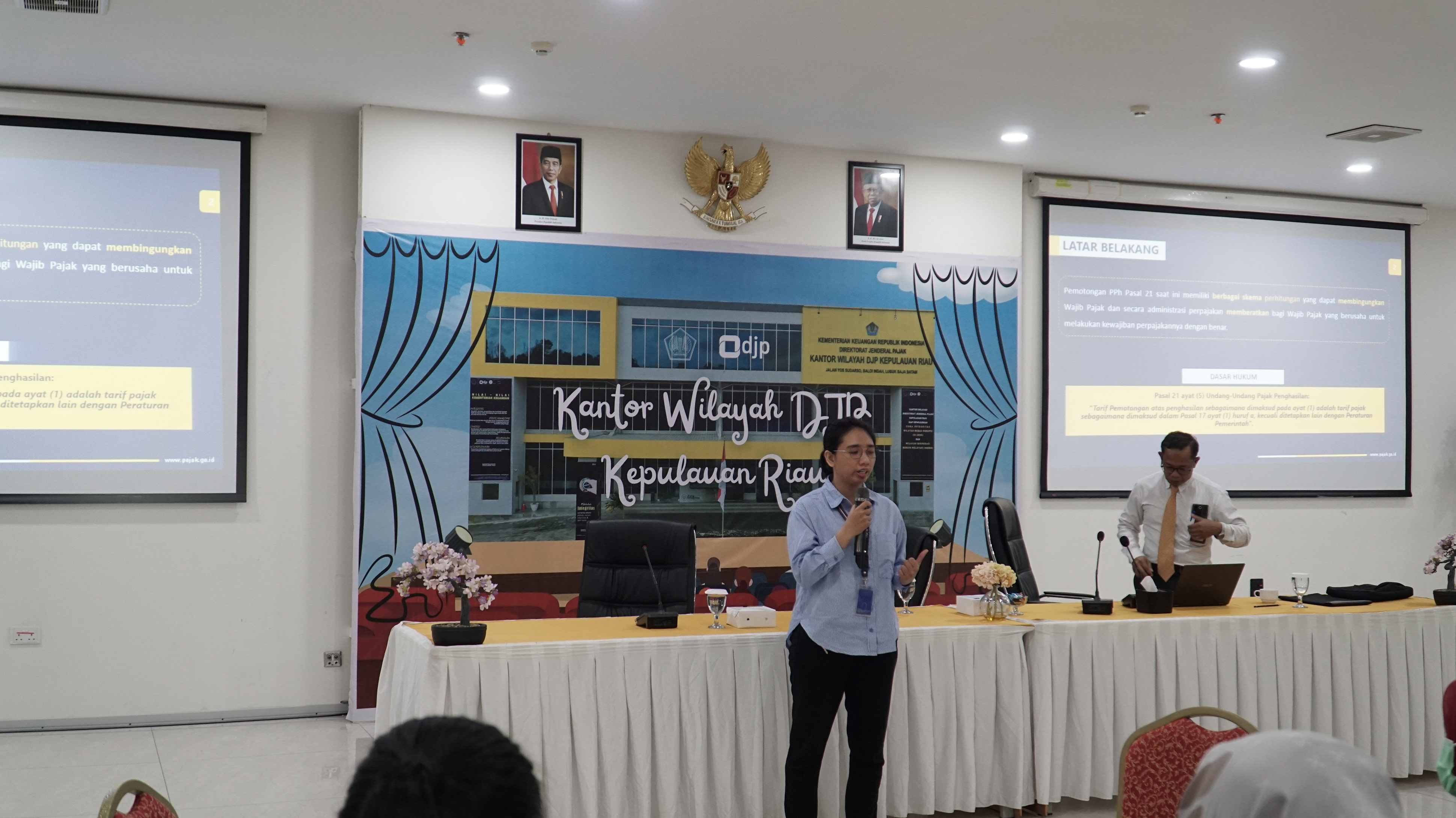 Tim Penyuluh Pajak Kantor Wilayah Direktorat Jenderal Pajak Kepulauan Riau (Kanwil DJP Kepri) bersama dengan Tim Penyuluh Pajak Kantor Pelayanan Pajak (KPP) Pratama di Kota Batam kembali mengadakan sosialisasi Peraturan Pemerintah (PP) Nomor 58 tahun 2023 dan Peraturan Menteri Keuangan (PMK) Nomor 168 tahun 2023 kepada bendahara rumah sakit bertempat di Aula Kanwil DJP Kepri, Kota Batam (Kamis, 25/1).