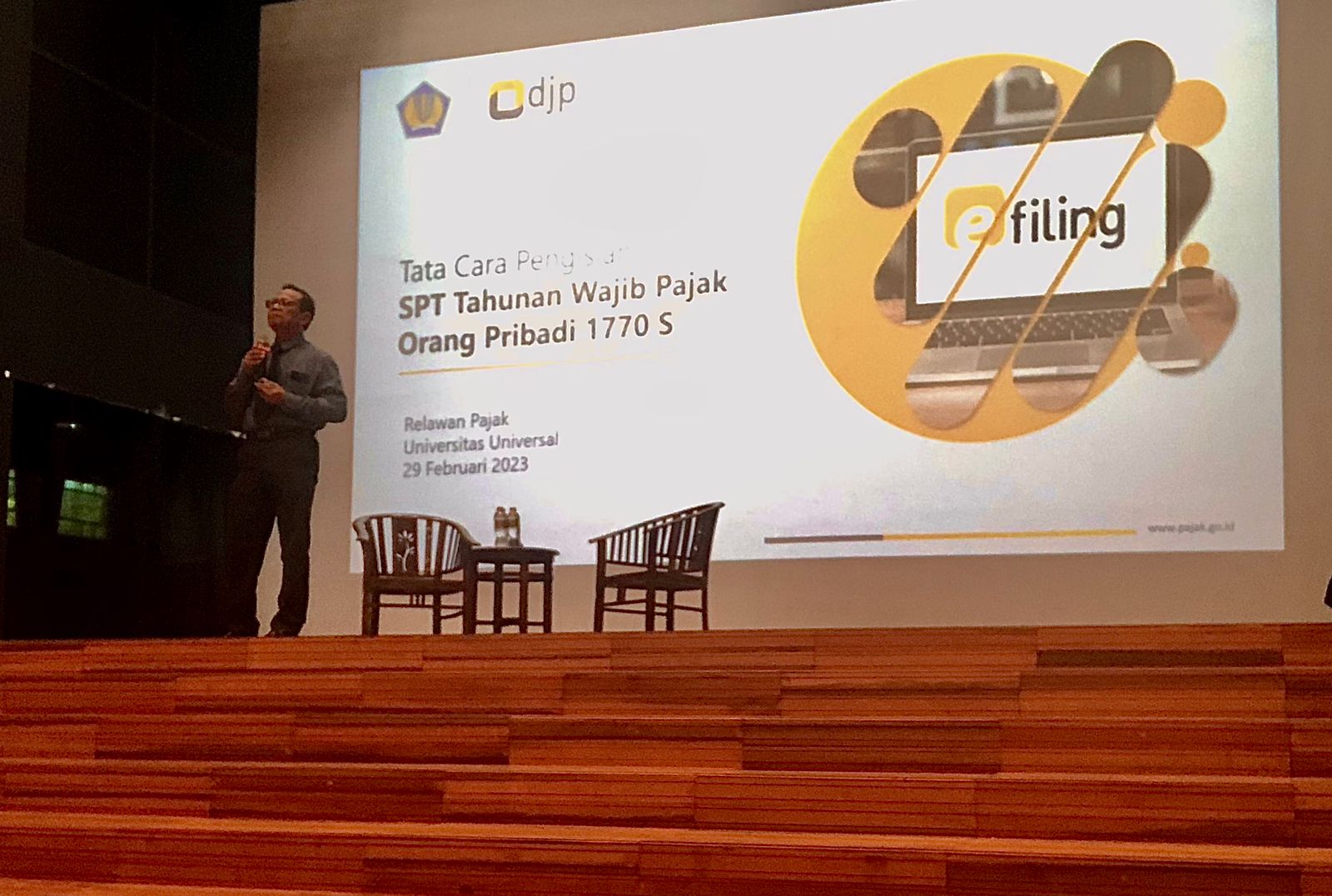 Kantor Wilayah Direktorat Jenderal Pajak Kepulauan Riau (Kanwil DJP Kepri) melaksanakan pelatihan kepada relawan pajak dari Universitas Universal (Uvers) Batam. Kegiatan berlangsung di Aula Uvers, Kota Batam (Kamis, 29/2).