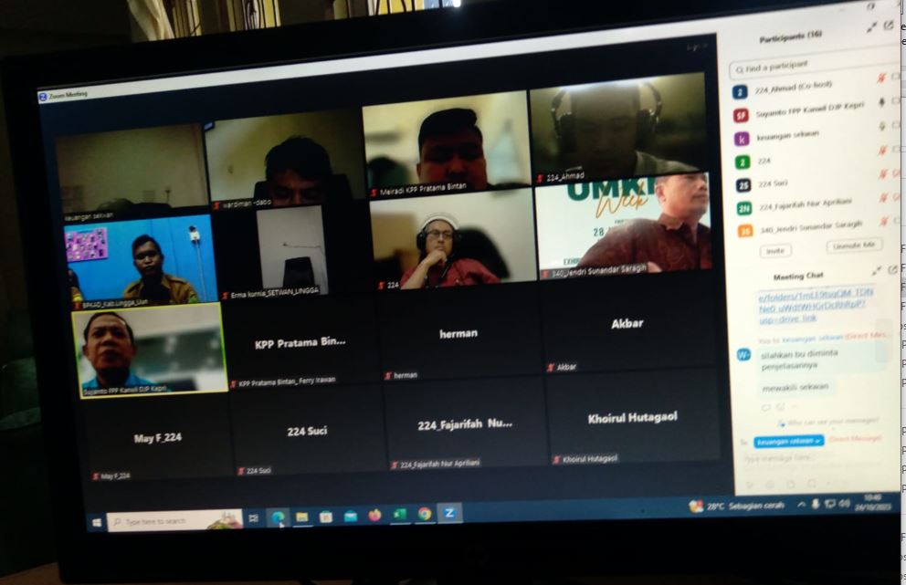 Kantor Pelayanan, Penyuluhan, dan Konsultasi Perpajakan (KP2KP) Dabo Singkep bersinergi dengan Kantor Pelayanan Pajak (KPP) Pratama Bintan serta Kantor Wilayah Direktorat Jenderal Pajak Kepulauan Riau (Kanwil DJP Kepri) menggelar edukasi perpajakan secara daring kepada staf Bagian Keuangan Sekretaris Dewan (Sekwan) DPRD dan Badan Pengelolaan Keuangan dan Aset Daerah (BPKAD) Kabupaten Lingga, Kepulauan Riau (Selasa, 24/10).