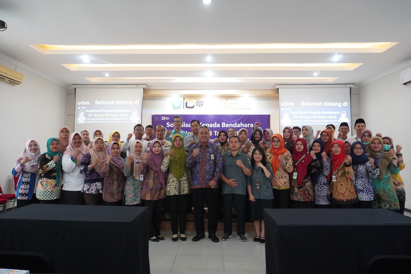 Kantor Pelayanan Pajak (KPP) Pratama Kudus menyelenggarakan kegiatan Sosialisasi Peraturan Pemerintah (PP) Nomor 58 tahun 2023 tentang Tarif Pemotongan Pajak Penghasilan (PPh) Pasal 21 atas Penghasilan Sehubungan dengan Pekerjaan, Jasa dan Kegiatan Wajib Pajak Orang Pribadi selama 2 (dua) hari pada tanggal 14 dan 15 Mei 2024 dengan mengundang 97 instansi pemerintah dilingkungan Kabupaten Kudus.