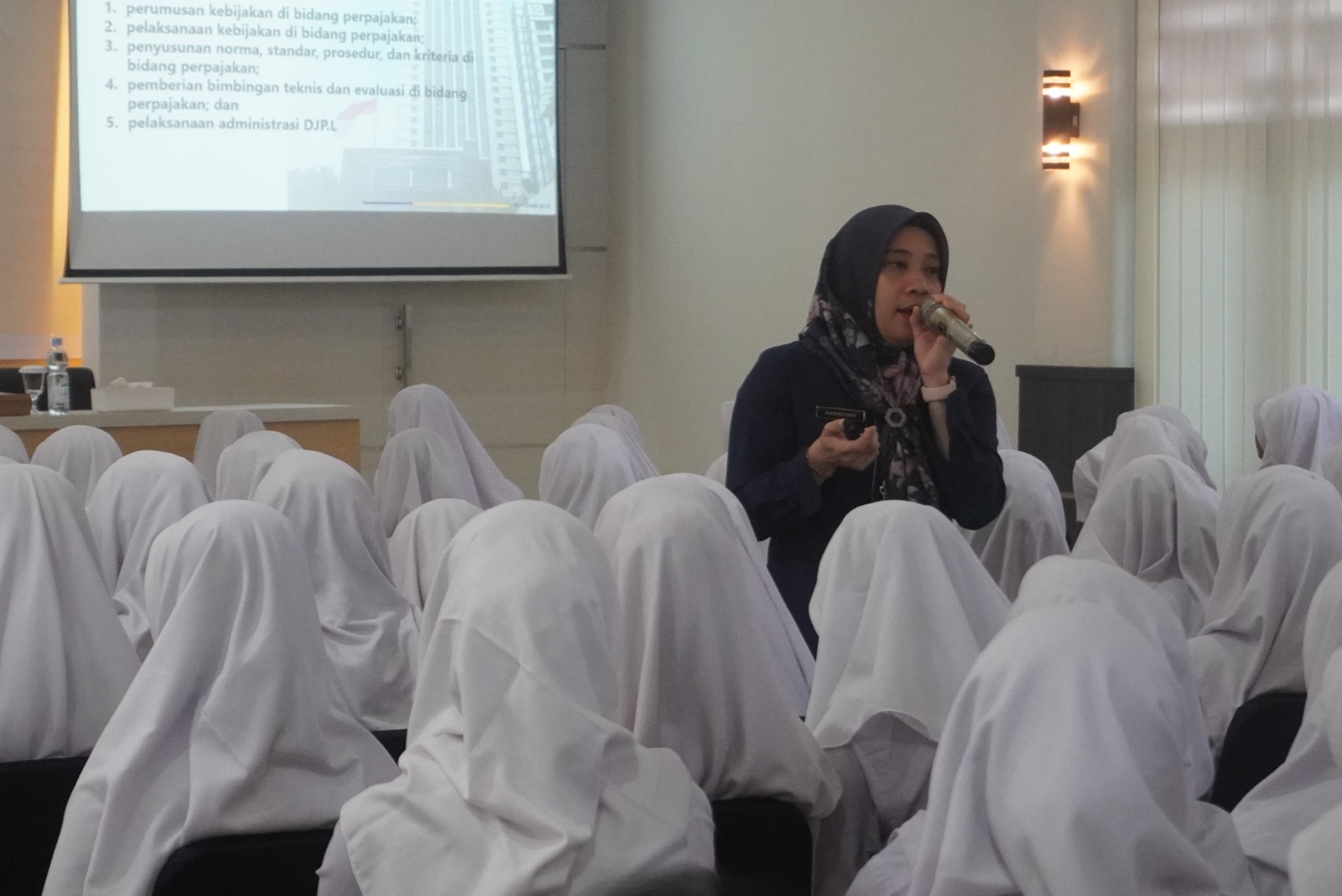 Kantor Pelayanan Pajak (KPP) Pratama Kudus menerima kunjungan Sekolah Menengah Kejuruan (SMK) Negeri 1 Kudus di Aula Lantai Gunung Muria KPP Pratama Kudus (Rabu, 24/4).