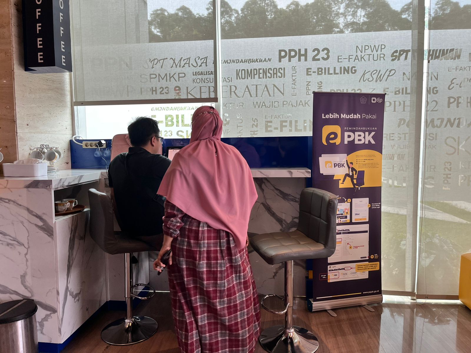 Penyuluh Pajak Kantor Pelayanan Pajak (KPP) Madya Tangerang memberikan asistensi kepada wajib pajak yang datang dan memerlukan asistensi dalam pemenuhan kewajiban perpajakannya secara langsung di KPP Madya Tangerang, Jalan Jalur Sutera Barat No.3, RT.003/RW.006, Panunggangan Timur, Pinang, Kota Tangerang, Banten (Selasa, 23/1).