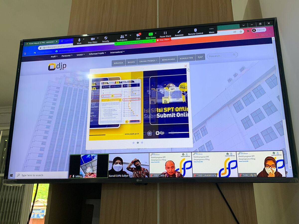 Kantor Pelayanan Pajak (KPP) Pratama Mamuju menggelar Bimtek Pengisian SPT Tahunan melalui e-Filing di Kanwil DJPb Sulawesi Barat yang terletak di Ruko Makkasau Terrace, Jalan Andi Makkasau, Karema, Kabupaten Mamuju (Selasa, 18/01). Walaupun diselenggarakan di tempat, acara ini dilaksanakan melalui Zoom Meeting, dikarenakan tempat yang tidak cukup untuk menampung semua peserta.