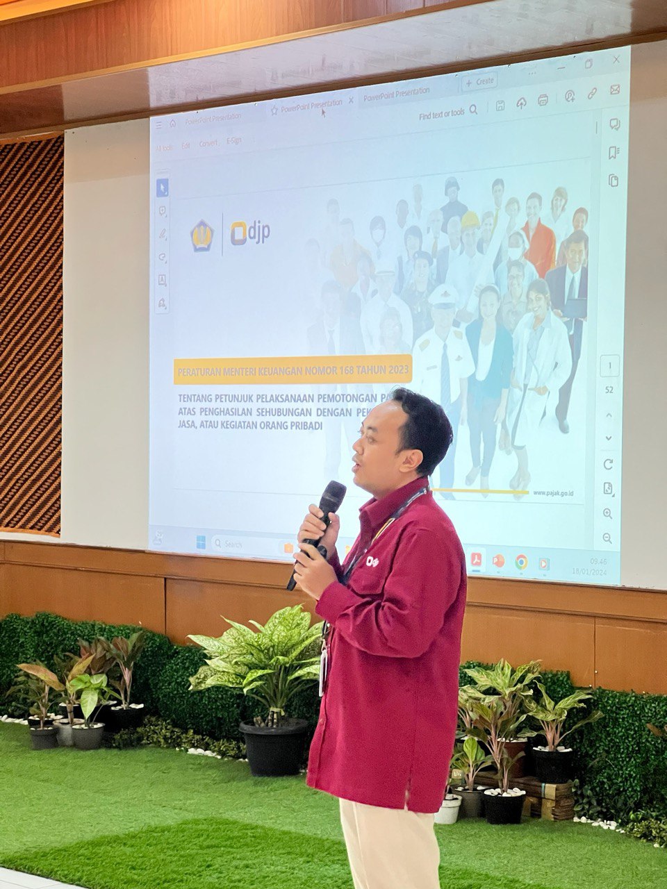Dalam rangka menyebarkan informasi seluas-luasnya kepada masyarakat, Kantor Pelayanan Pajak (KPP) Pratama Jakarta Menteng Satu menggelar kegiatan edukasi perpajakan atas Peraturan Pemerintah (PP) Nomor 58 Tahun 2023 tentang Tarif dan Pajak Penghasilan Pasal 21 atas Penghasilan Sehubungan dengan Pekerjaan, Jasa,atau Kegiatan Wajib Pajak Orang Pribadi (WP OP) selama dua hari sejak tanggal 17 sampai dengan 18 Januari 2024 (Rabu, 17/1).