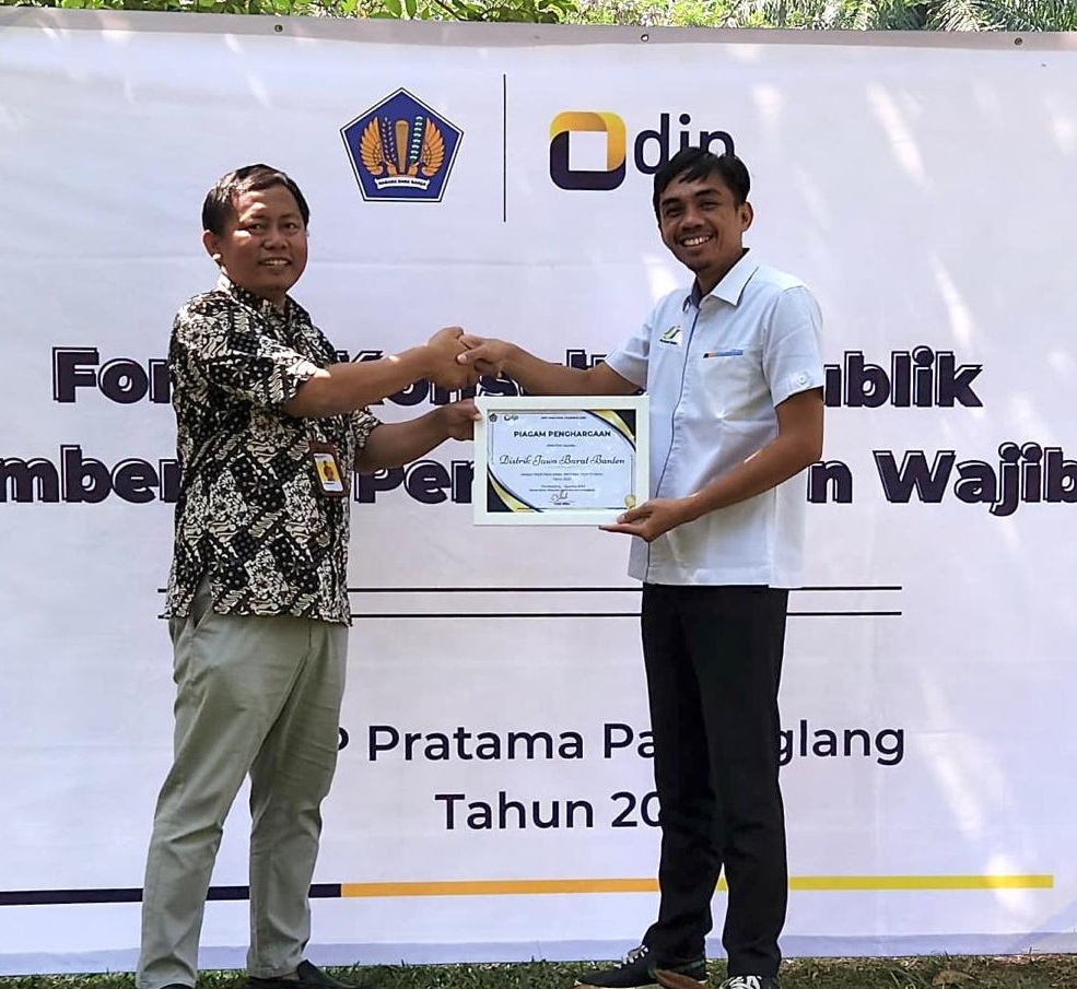 Kantor Pelayanan Pajak (KPP) Pratama Pandeglang memberikan apresiasi penghargaan kepada salah satu Wajib Pajak Badan sebagai Penyetor Pajak Terbesar Kedua Tahun Pajak 2023 yaitu Kantor Distrik Jawa Barat Banten, Kabupaten Lebak (Selasa, 27/8).