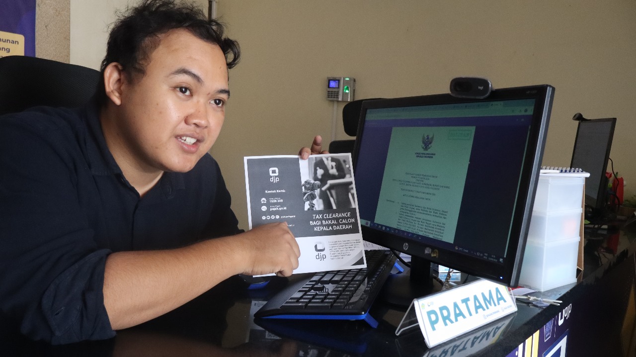Kantor Pelayanan, Penyuluhan, dan Konsultasi Perpajakan (KP2KP) Pinrang memberikan penjelasan mengenai pentingnya Tax Clearance bagi bakal calon kepala daerah di Helpdesk KP2KP Pinrang (Selasa, 27/8).