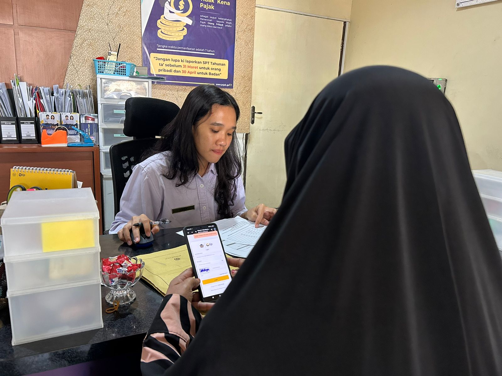 Widya, wajib pajak yang berprofesi sebagai afiliator lokapasar, mengunjungi Kantor Pelayanan, Penyuluhan, dan Konsultasi Perpajakan (KP2KP) Pinrang untuk mencetak kartu Nomor Pokok Wajib Pajak (NPWP) miliknya di Tempat Pelayanan Terpadu (TPT) KP2KP Pinrang (Senin, 28/10).